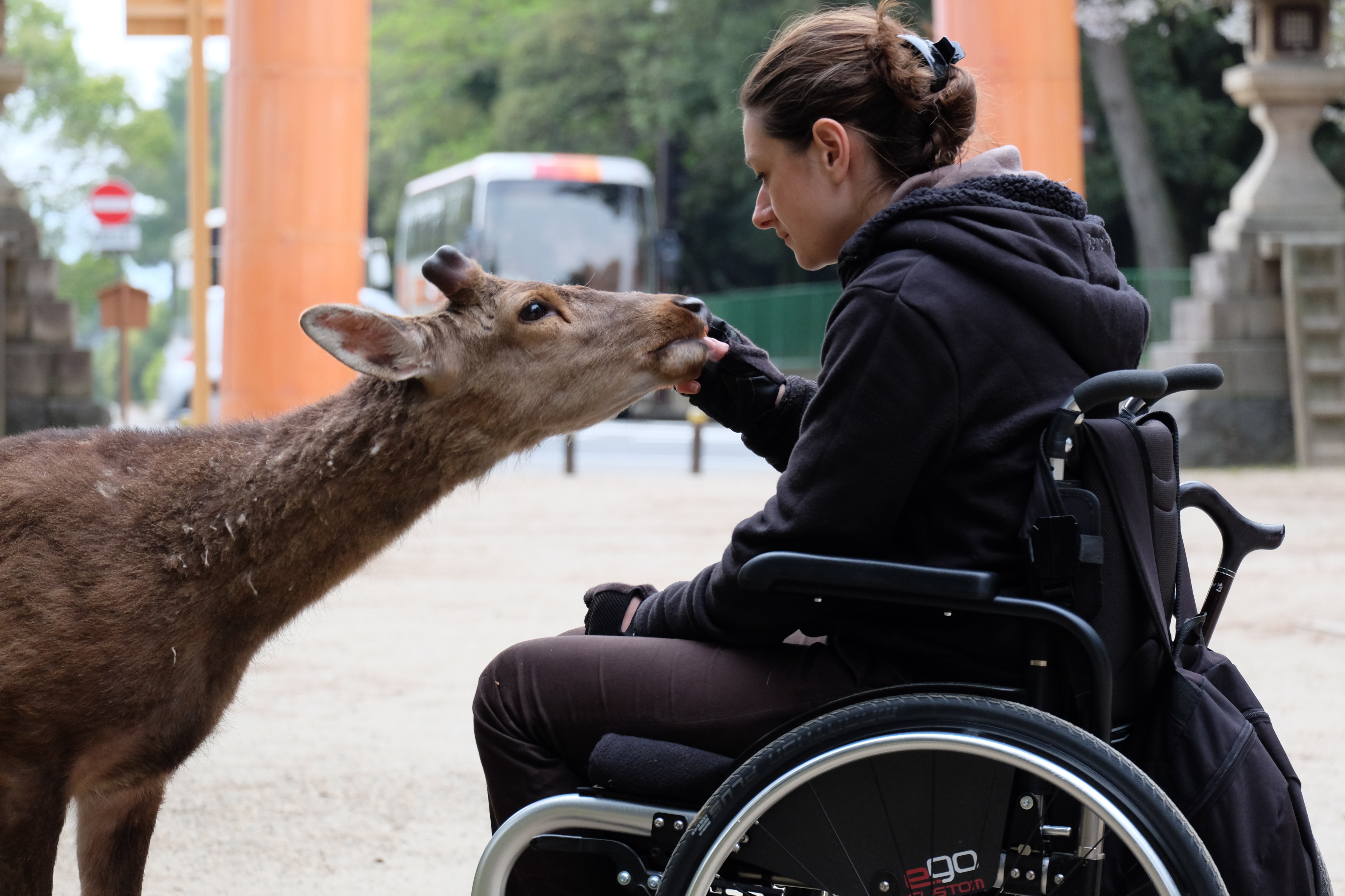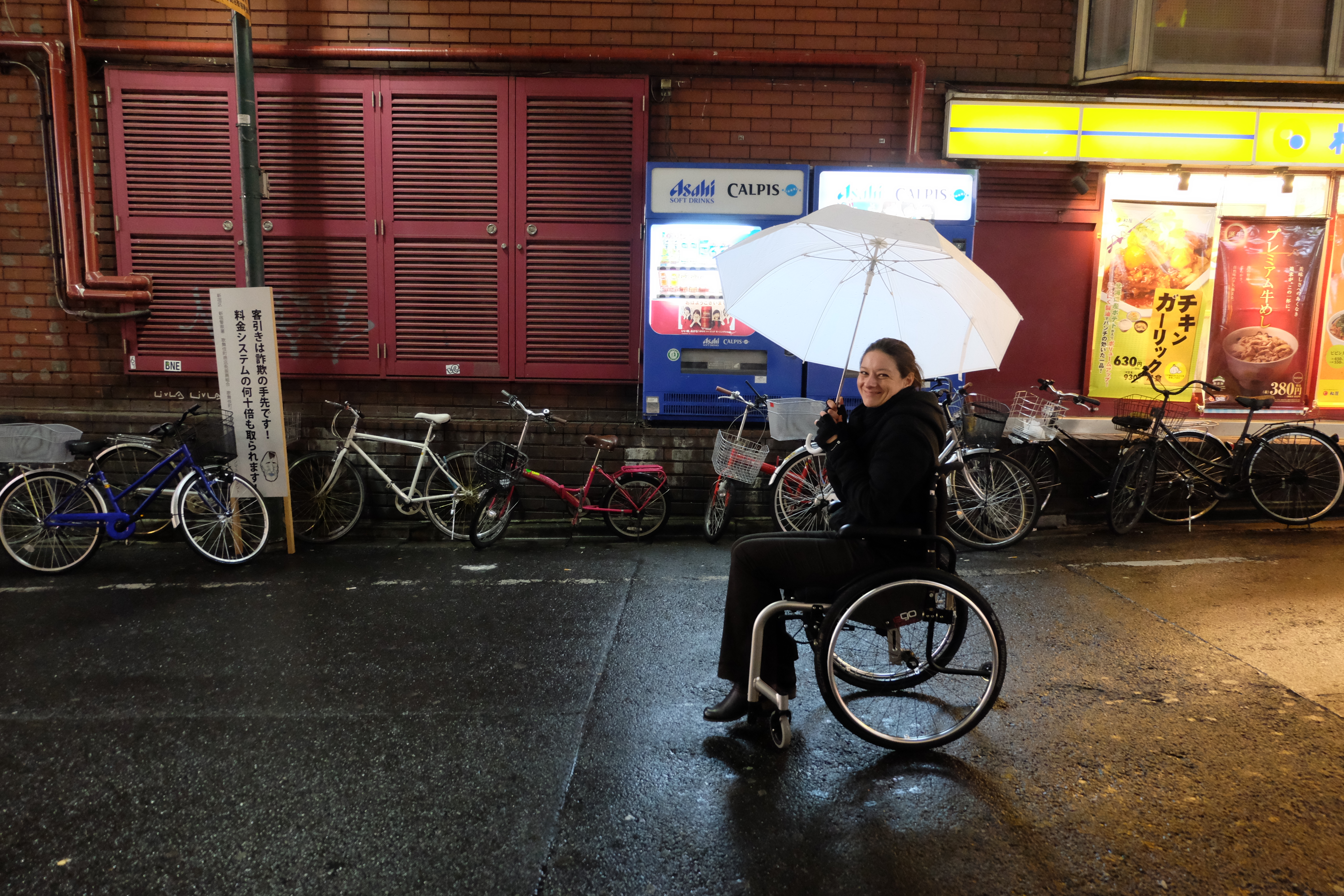 Finalement les choses se sont faites naturellement. J’avais envie de voyager depuis un bon moment alors lorsque j’ai perçu mes premiers salaires j’ai économisé et, avec Franck mon conjoint, nous avons décidé de partir au Japon trois semaines. J’étais face à l’évidence que si je voulais profiter pleinement de ce voyage, sans souffrir de la fatigue et des douleurs, je n’avais pas d’autre choix que de partir avec un fauteuil roulant. Alors je suis allée acheter mon premier fauteuil roulant.