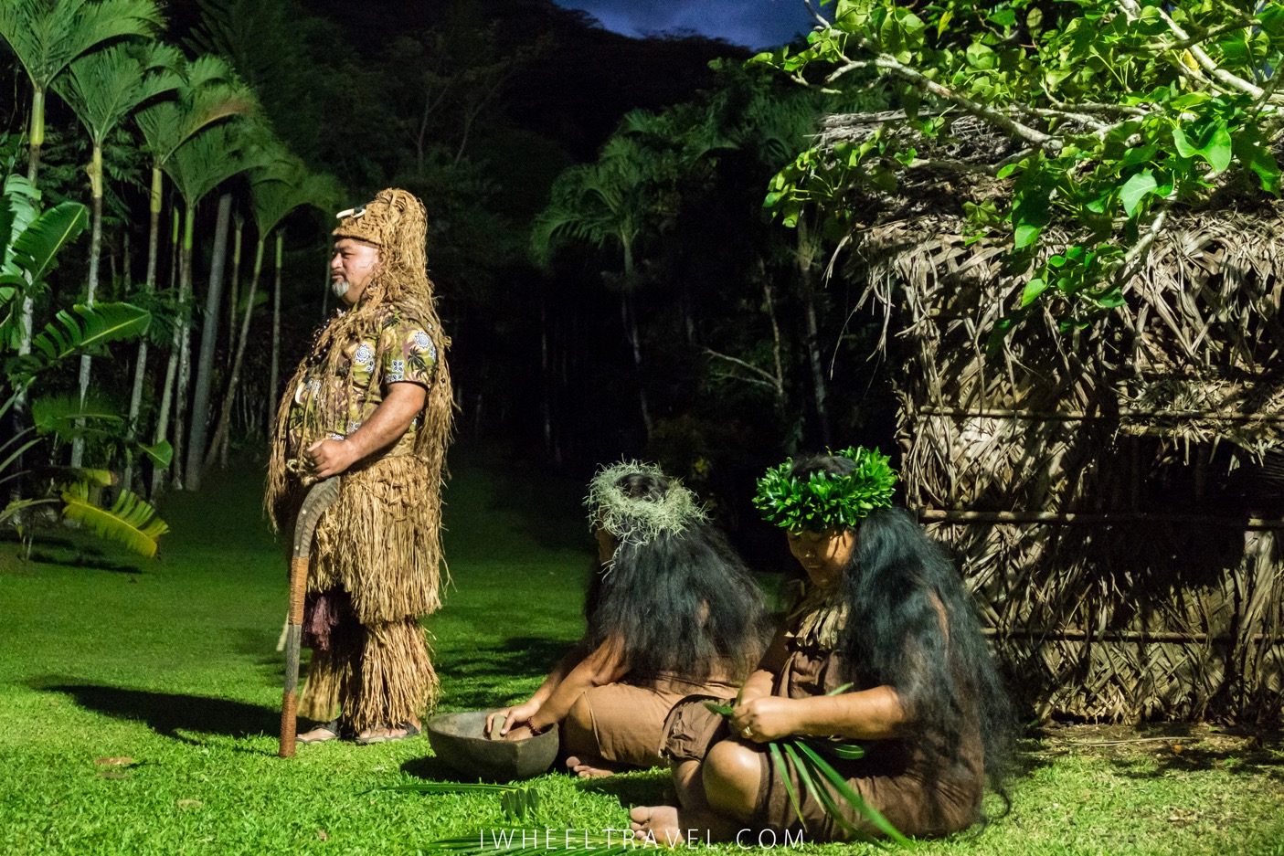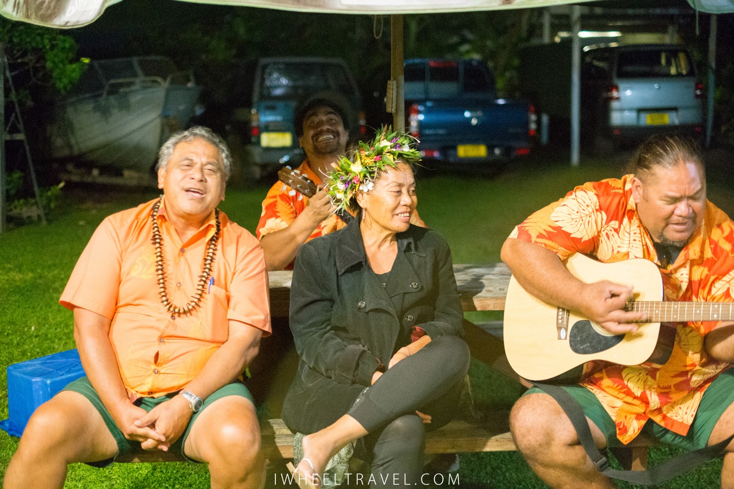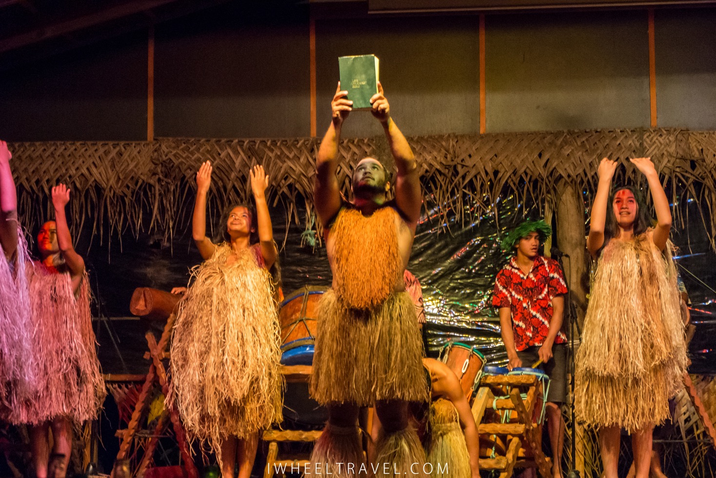 Le spectacle est par contre une totale réussite. Les chants, les danses et les percussions : tout est très bien exécuté ! Les danseuses sont si gracieuses et si jolies dans leurs tenues de vahinés que ça l’air naturel et facile alors que ça doit être bien fatiguant ! Chaque danse représente une période de l’Histoire de Rarotonga ou un moment important de vie. On découvre ainsi à travers ces prestations les guerres entre tribus, la conquête de la Nouvelle-Zélande ou les traditions qui encadrent le mariage.