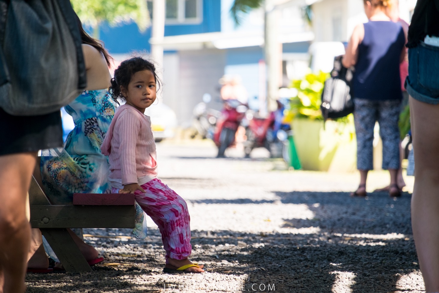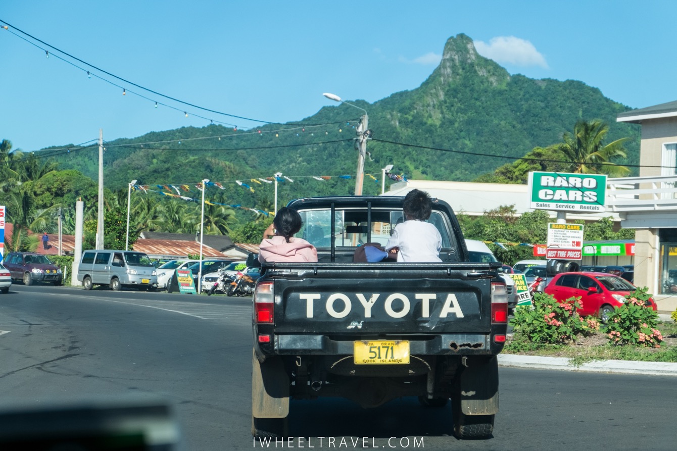 Rarotonga a beau être la plus grande des iles Cook elle ne fait que 11 kilomètres de long. La route principale qui fait le tour de l’ile fait 37 kilomètres alors même si on se trompe de sens ce n’est pas bien grave ! Ce sera l’occasion de croiser quelques-uns des habitants de l’ile, assis sur leurs scooters sans casques ou dans leurs voitures sans ceintures ! Et oui là-bas la sécurité routière c’est autre chose. Il est normal de voir des enfants assis entre les deux sièges avants sans ceintures ou encore à l’arrière d’un pick-up. Une fois j’ai même vu une petite fille dormir alors qu’elle était contre le dos de sa mère qui conduisait un scooter… Le tout sans casque bien sûr ! Complètement impensable chez nous !