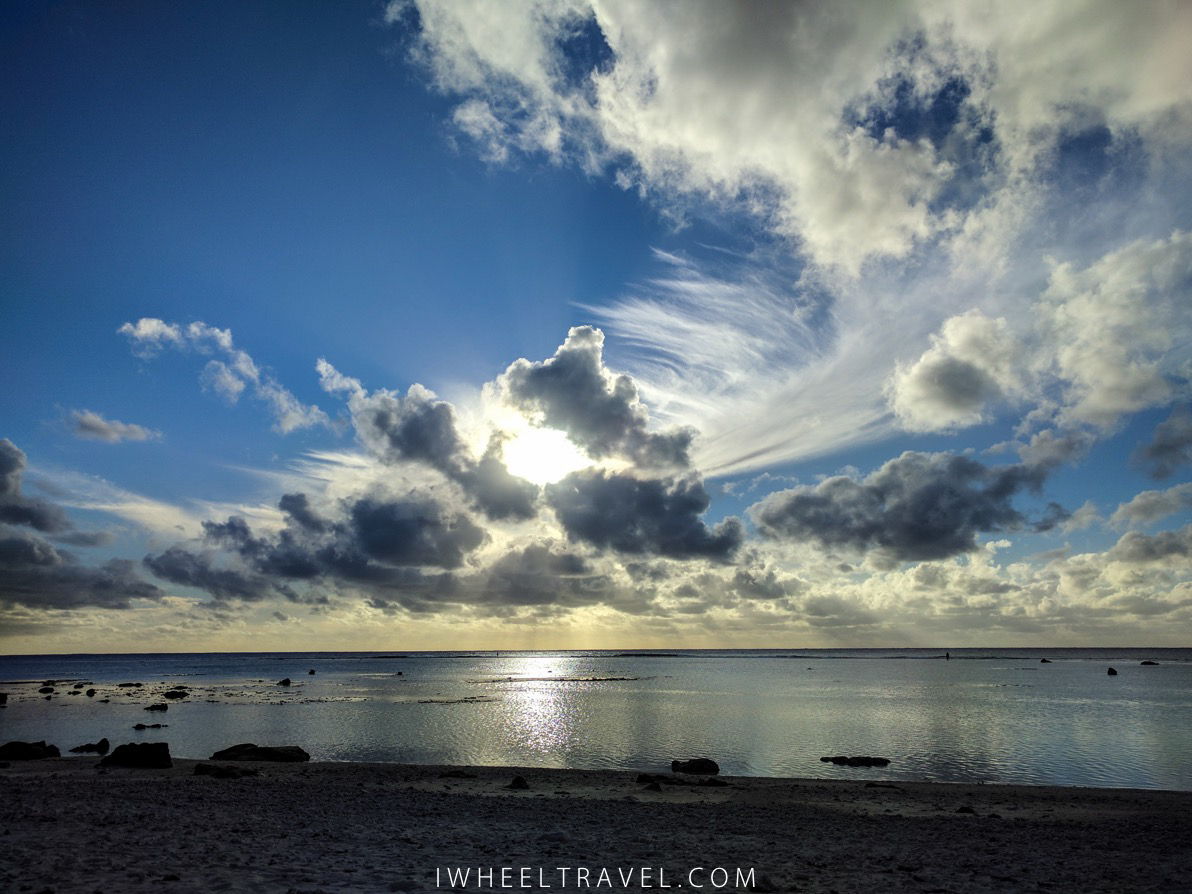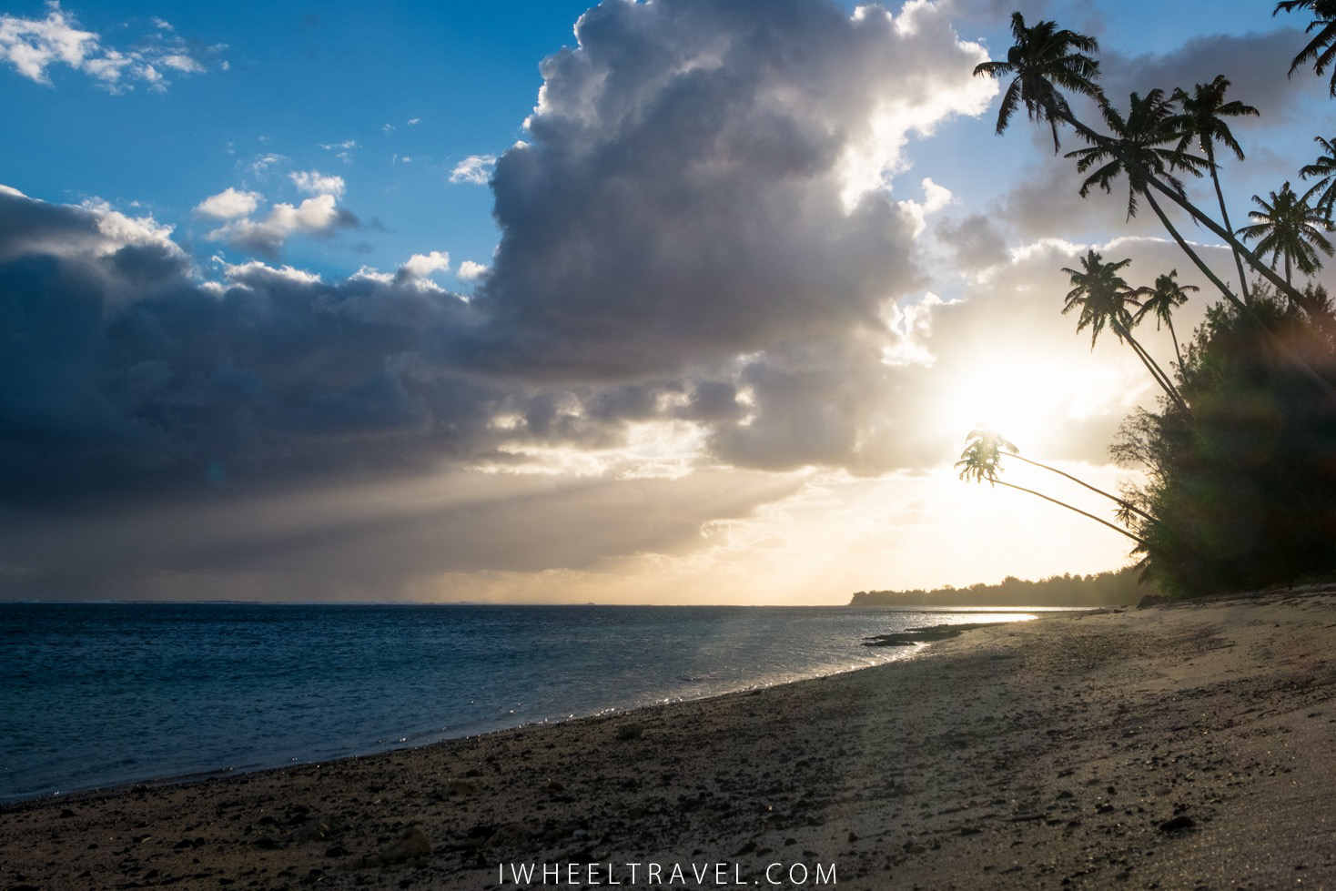 Tout comme à Muri, à Rarotonga Fruits la couleur de l’eau est fascinante. Seulement quelques pas et quelques noix de coco séparent votre serviette du lagon mais en cas de temps venteux la plage est exposée. Pour échapper au vent et profiter des rayons du soleil le plus tard possible c’est à Black Rock qu’il faut aller. Nous n’avons jamais eu de vent sur cette plage située au nord-ouest de l’ile. Le cadre est un peu moins idyllique mais le sable est toujours jaune et l’eau toujours chaude. Surtout vous pourrez y admirer de beaux couchers de soleil et peut-être même voir un avion passer devant avant d’aller atterrir un peu plus loin.
