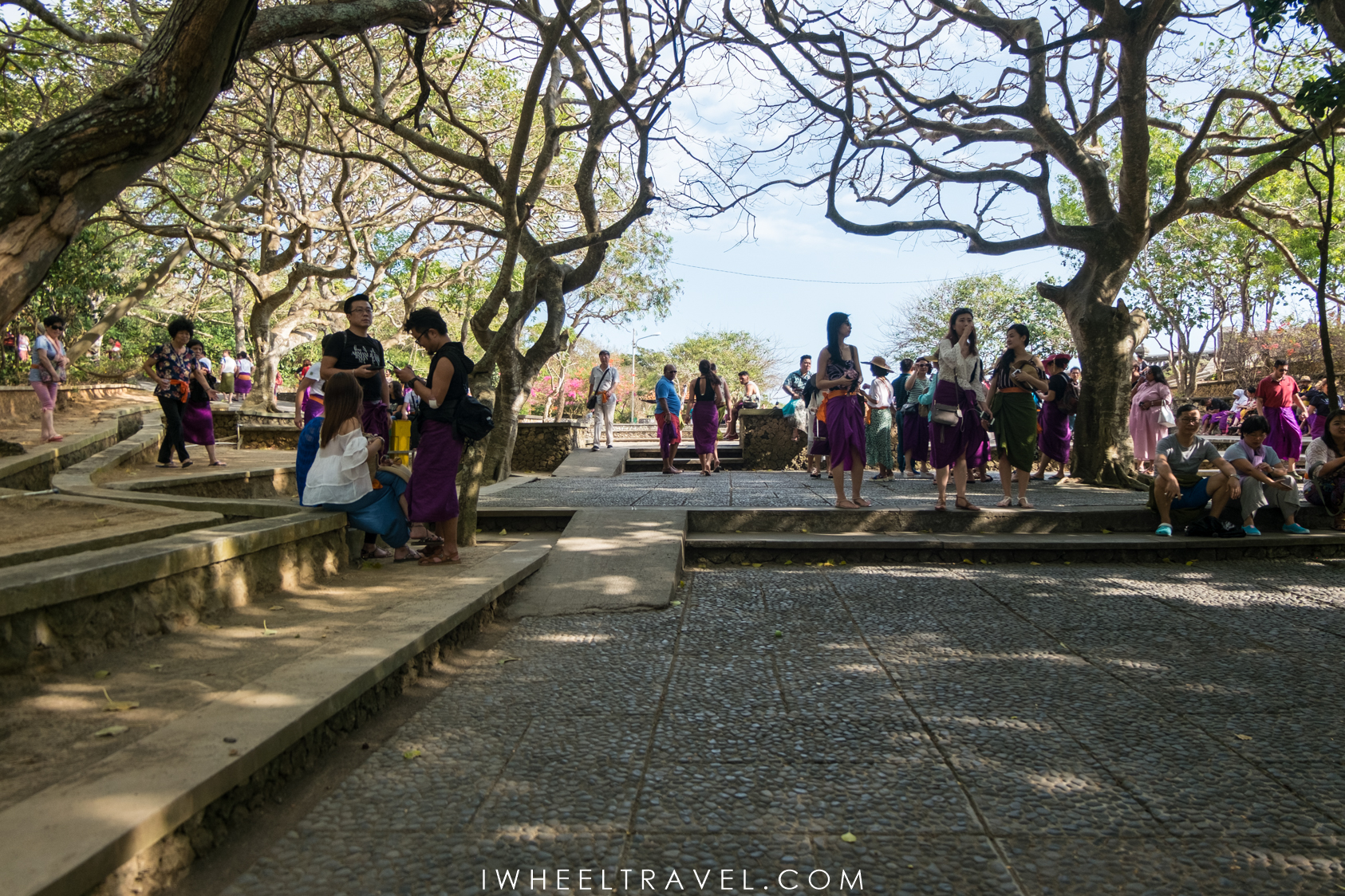 When we arrived in Bali we discovered a new culture and a different feel. It is very different from the other Indonesian islands we visited. There is a reason to this: whereas most people in Indonesia are Muslim, in Bali people are Hindu. Hinduism is everywhere: in the men and women clothes, in the beautiful small offerings, in the statues of the divinities, in the bell jingling and, of course, in the many Hindu temples. There are so many of them that you just cannot visit them all, you have to make a choice when you visit Bali. To start our Balinese journey we chose to go to Tanah Lot temple and Uluwatu temple in the south of Bali. We will visit other temples in the west of Bali later.