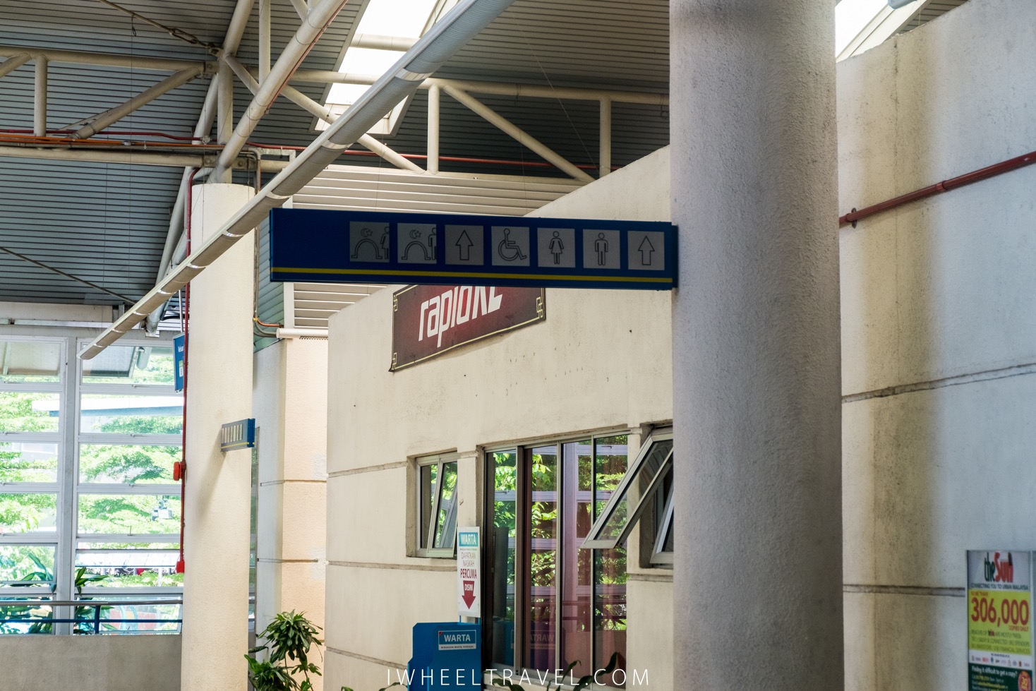 The « Rapid KL » company handles most of Kuala Lumpur public transports. I used the monorail, meaning the aerial line (line 8). I noticed that it is a wheelchair friendly transport. There are wider ticket barriers for wheelchairs, lifts and boards informing that help can be provided if needed. Disabled people also have priority in some train wagons.