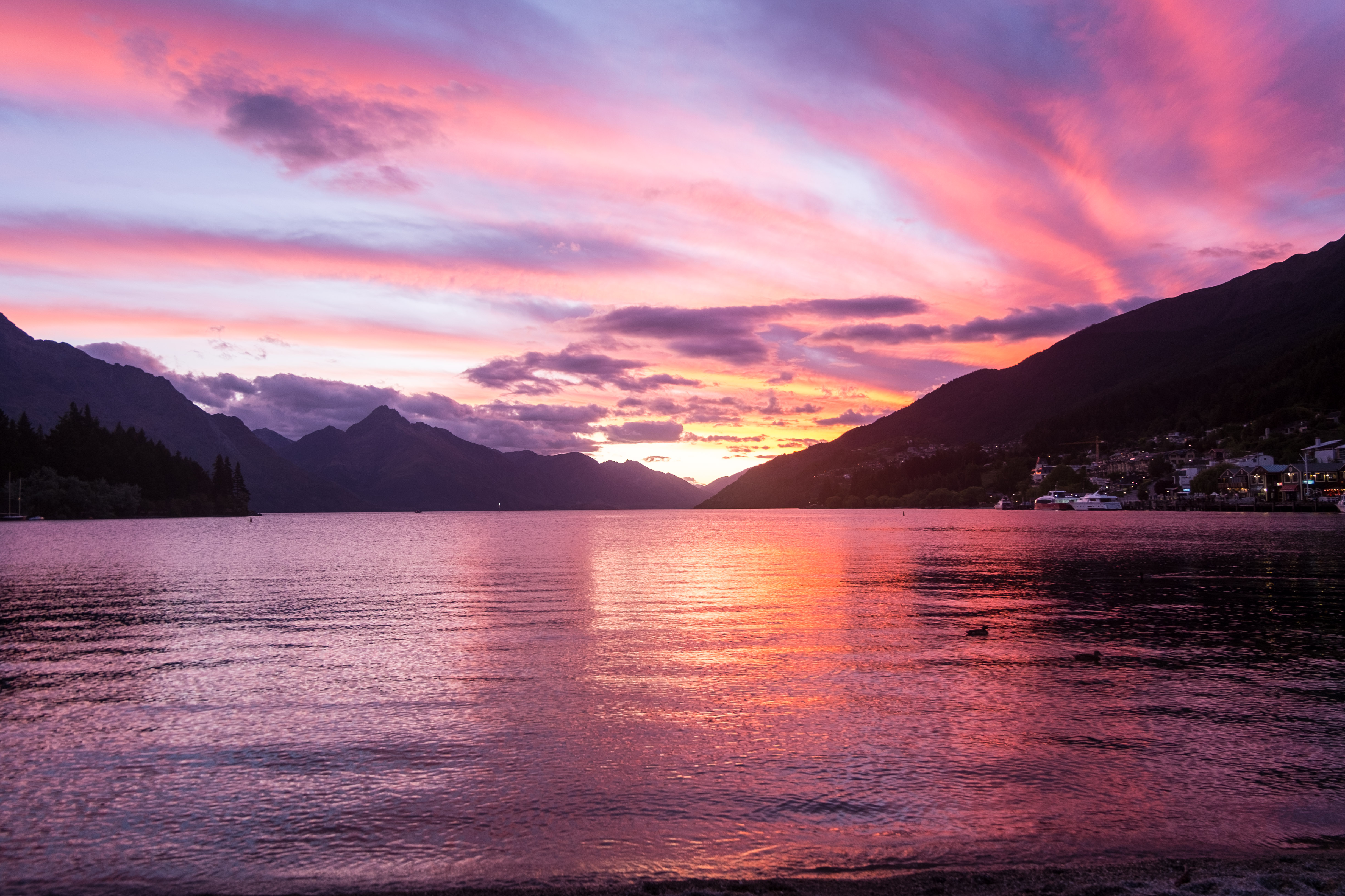 Queenstown, nestled along the Wakatipu lake and surrounded by the Remarkables mountains seems to be a perfect seasonal city. This city is not very big but there is a lot to do there. Enclosed by a lake, this city makes me thing about Annecy in Francne except that in Queenstown everything is bigger. A bigger lake, more dramatic mountains, more sensational activities, more shops… Queenstown is a superlative city located in the centre of the south island. However Queenstown miss something that Annecy has. I am not talking about a really good savoyard restaurant even if I must admit that I feel hungry just to write it! What Queenstown miss is a bit a charm and personality. Come on! Even if I think it miss a bit of character this city is really amazing so let’s go! Follow me for a visit. The sunset worth it by itself!