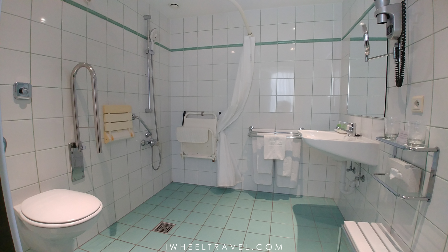 - Où dormir ? J’ai dormi à l’hôtel NH Gent Belfort situé en plein centre-ville. La chambre PMR est très spacieuse et la salle de bain parfaitement adaptée. Deux petits bémols : la chambre PMR est communicante donc prévoyez des bouchons d’oreilles en cas de voisins un peu bruyants et une table entrave l’accès aux rideaux qu’il est difficile d’ouvrir et de fermer en étant en fauteuil roulant. La salle de petit-déjeuner est également accessible (et le petit-déjeuner est super bon !). L’entrée dans l’hôtel se fait par une porte tambour. Avec mon fauteuil c’est passé mais pour les fauteuils plus larges il faudra peut-être entrer par les portes latérales. Elles s’ouvrent de l’intérieur donc il faudra joindre l’accueil ou demander de l’aide à un passant.
