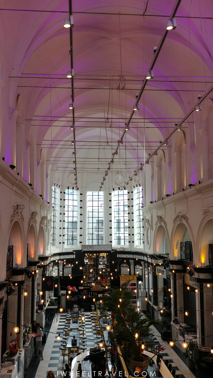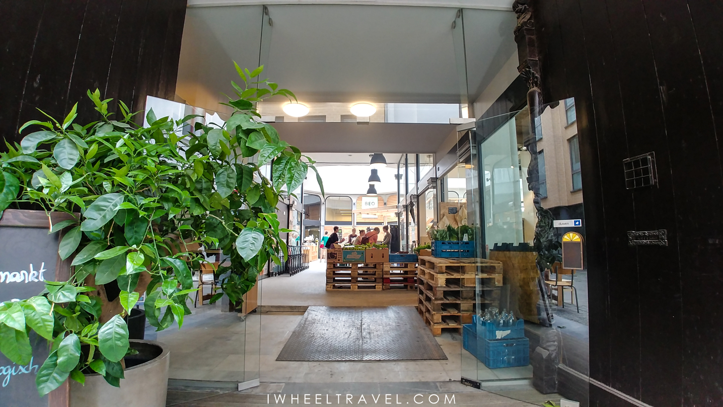 - Holy Food Market : Beverhoutplein 15. Food market regroupant des restaurants aux univers très différents (japonais, indien, italien, russe…) dans une ancienne chapelle baroque. Le lieu est sublime et en plus il est accessible en fauteuil roulant. Il y a un ascenseur tout de suite à gauche après l’entrée pour monter à l’étage. La rampe, installée à l’extérieur, pour rentrer dans le bâtiment est un peu trop raide pour la gérer seul en fauteuil roulant manuel.