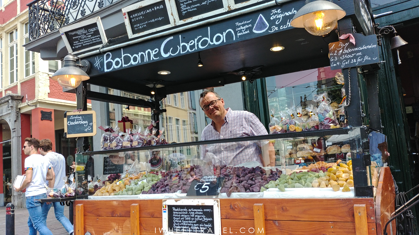 Si vous voulez découvrir les spécialités culinaires gantoises vous pouvez aussi commander un waterzoi au restaurant : ce bouillon de légumes et de poulet ou de poisson est un plat copieux typiquement local. Du côté des sucreries, la spécialité ce sont les Cuberdons. Ce sont des bonbons très sucrés (beaucoup trop me concernant!) au cœur coulant. La recette originale est à la framboise mais d’autres goûts existent.