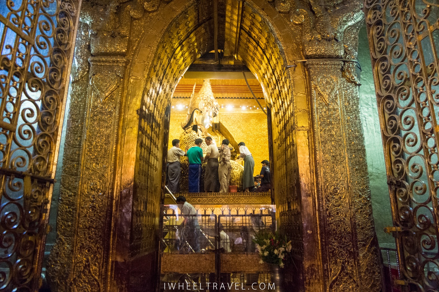 La pagode Mahamuni est un lieu de pélérinage important pour les Birmans. Elle abrite une imposante statue de Bouddha de quatre mètres de haut entièrement recouverte d’or. Chaque Birman bouddhiste essaie d’y venir au moins une fois au cours de sa vie pour y méditer et déposer une nouvelle feuille d’or sur le bouddha. En effet le but ultime des bouddhistes est d’atteindre le nirvana et faire des donations est un des moyens de s’en rapprocher dans la prochaine vie.