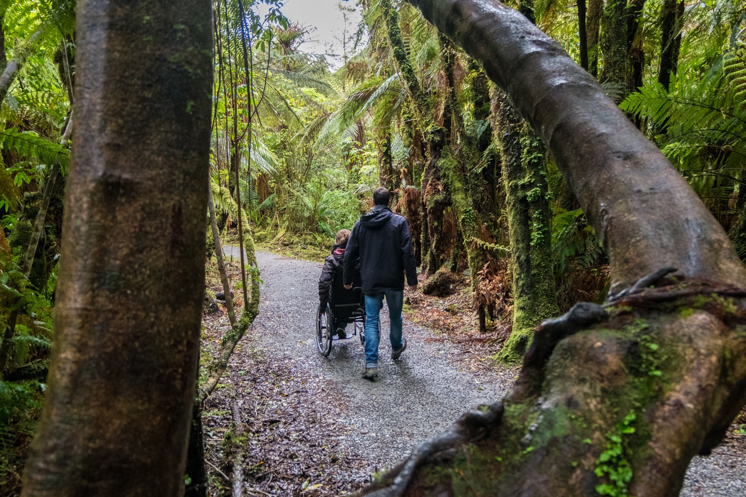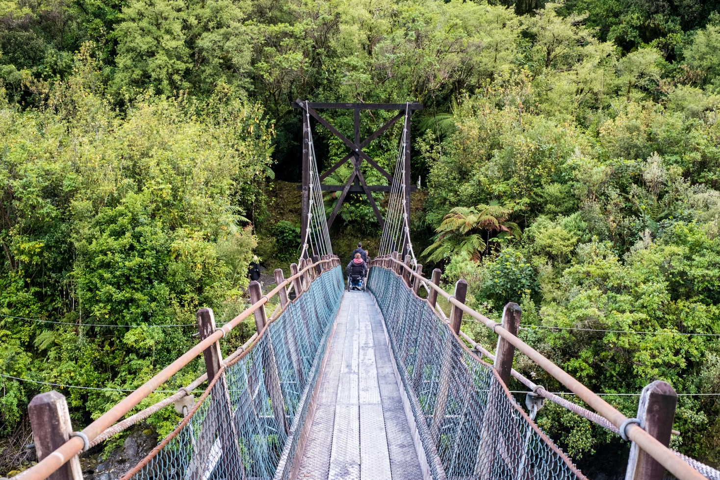 Cette balade se termine par un passage sur un pont suspendu qui est plus facilement accessible depuis l’autre extrémité. Je conseille donc aux personnes à mobilité réduite d’aller jusqu’au pont depuis l’entrée située sur « Fox Glacier Access Road » et de rebrousser chemin.