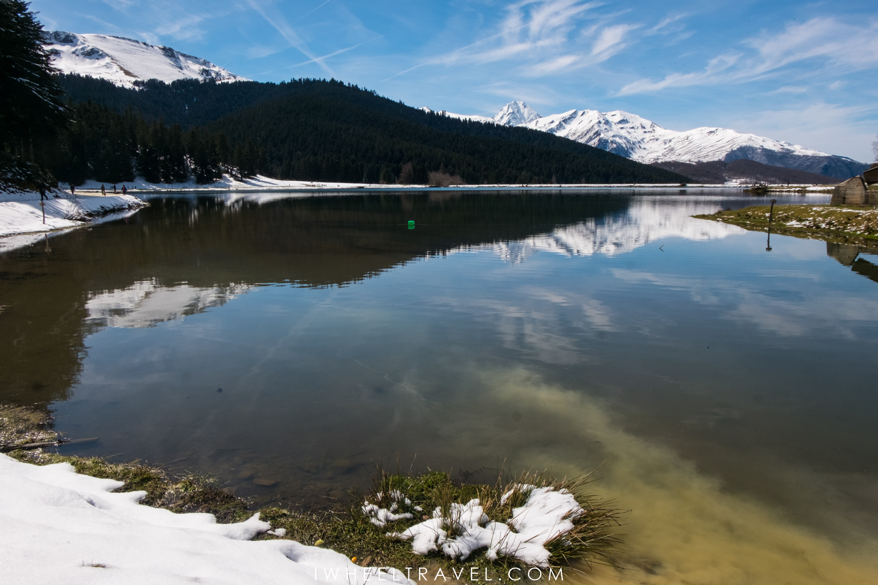 L’endroit est parfait pour se promener puisqu’un chemin fait le tour du lac et permet de profiter du paysage sous le soleil… mais aussi les pieds dans la neige parfois ! Et c’est le cas aujourd’hui comme il y a eu des chutes de neige hier. Le chemin est donc plein de gadoue et il vaut mieux prévoir de bonnes chaussures imperméables si l’on ne veut pas finir les pieds complètement trempés ! Mais les beaux jours arrivent et le problème ne devrait plus trop se poser. En pleine saison il sera même possible de faire le tour du lac à poney pour 1o euros. Ça va en faire des heureux !