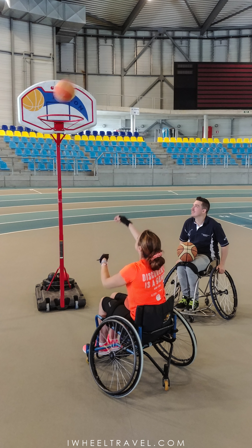 En dépit de cette bienveillance et des indications « non accessible pmr », quelques minutes plus tard, malgré nos caractères optimistes, nous avons du faire face à un moment de frustration et de démotivation. Nous avions mis 30 minutes à venir du centre-ville pour venir dans cette zone y réaliser trois challenges, et nous retrouvions maintenant dans un vélodrome pour apprendre à faire du cyclisme sur piste ! On s’est donc regardées silencieusement, hésitant entre rires ou pleurs devant cette situation, la fatigue prenant le dessus !