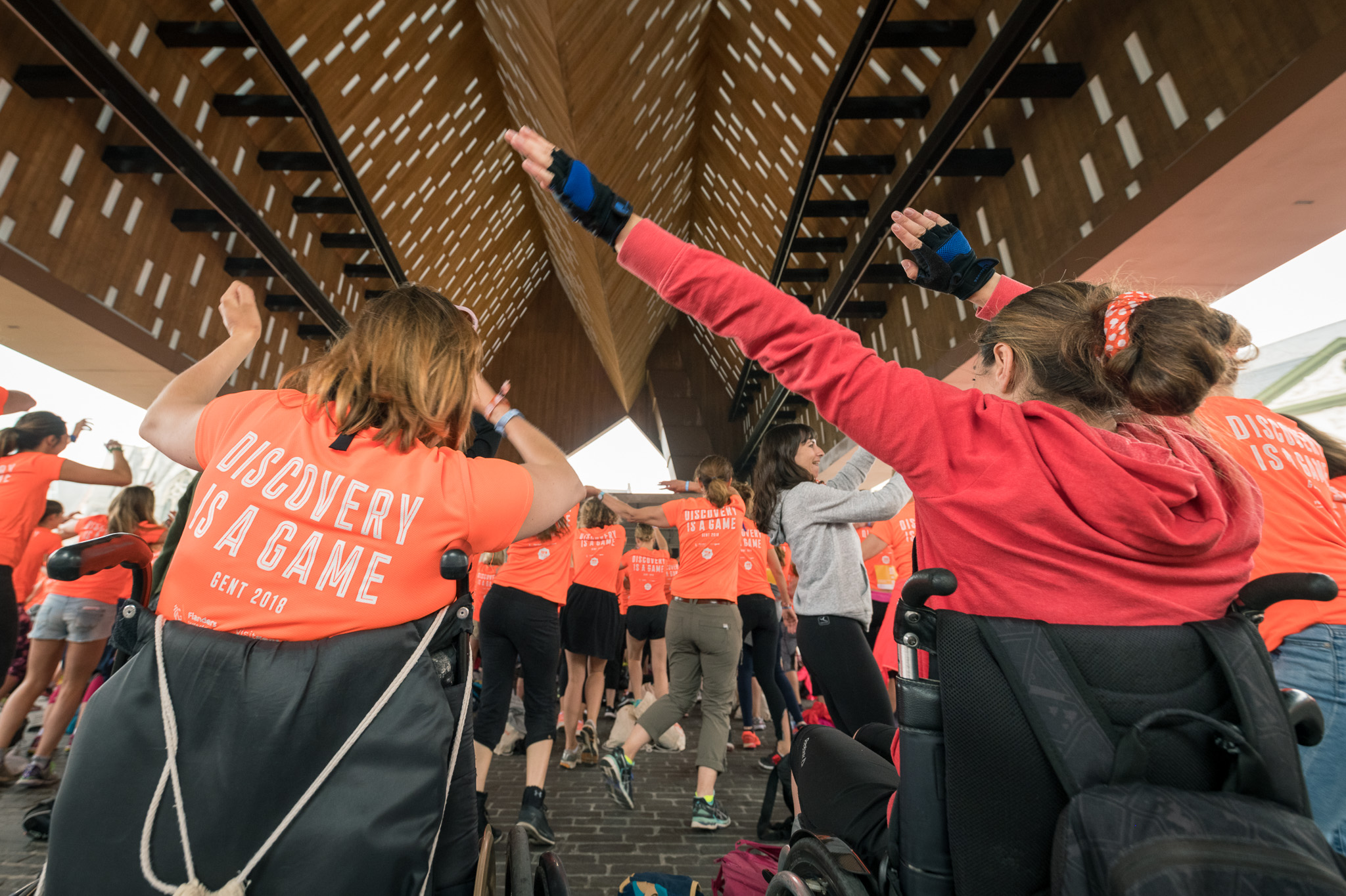 Moins d’un mois après notre échange de mail avec Visit Flanders, je pose donc mes roulettes sur le sol Belge pour la première fois. Le week-end fût court et intense. Riche en émotions ! Surtout la journée de samedi qui était consacrée au Pop in the City. De 9h à 17h, nous étions plus de 250 duos féminins à participer à ce trail urbain 100% féminin qui a lieu dans une ville européenne différente à chaque édition. Mais avant cela c’est l’heure de l’échauffement : en groupe et en musique svp !