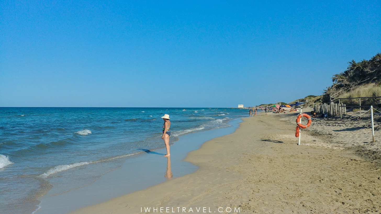 Située à 25 minutes de route d’Ostuni, la plage de Torre Guaceto est ma plage coup de cœur dans les Pouilles. Non seulement elle est vraiment belle, la mer est transparente et calme mais surtout elle est accessible et aménagée. Apparemment cette plage est aussi un bon spot à snorkeling mais nous n’avons pas testé car nous n’avions ni masques ni tubas.