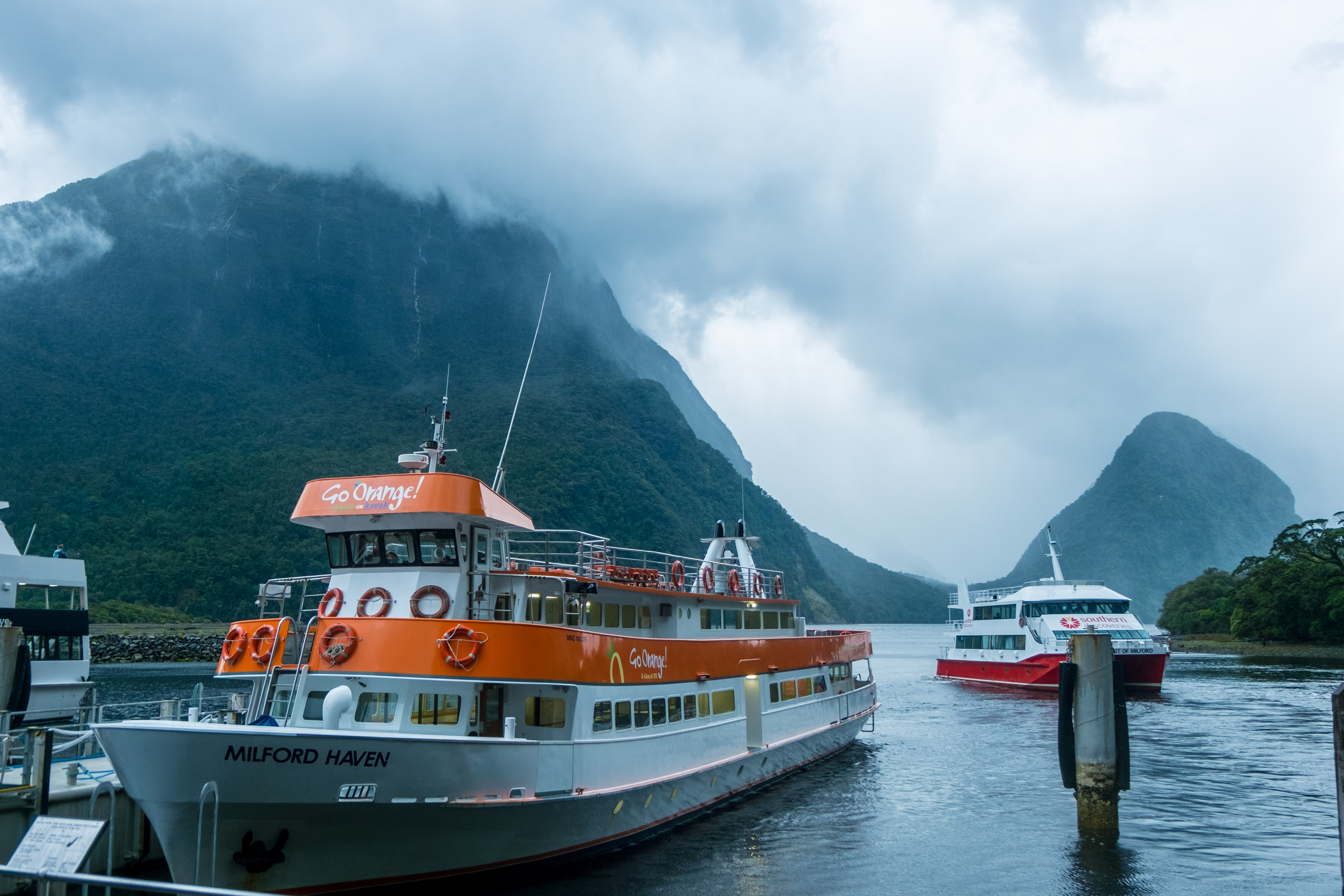 Pour cette découverte nous avons choisi de faire une croisière d’environ 2 heures dans les eaux du fjord mais il est également possible de visiter les lieux en kayak, de les survoler en hélicoptère ou de faire la célèbre « Milford Track », l’une des 9 great walks de Nouvelle-Zélande. Cette randonnée de 53 kilomètres débute à l’extrémité du lac Te Anau et se termine à « Sandfly Point » à Milford Sound. Si vous optez pour cette option, pendant 4 jours, vous allez marcher en montagne, traverser des ponts suspendus, observer des lacs et glaciers. Vous allez même voir la plus grande cascade de Nouvelle-Zélande « Sutherland Falls » qui atteint 580 mètres de hauteur. Il parait que le jeu en vaut la chandelle. Cette randonnée rencontre donc un très grand succès et c’est pourquoi je vous conseille de réserver vos nuits dans les campings ou les huttes du D.O.C plusieurs mois à l’avance.