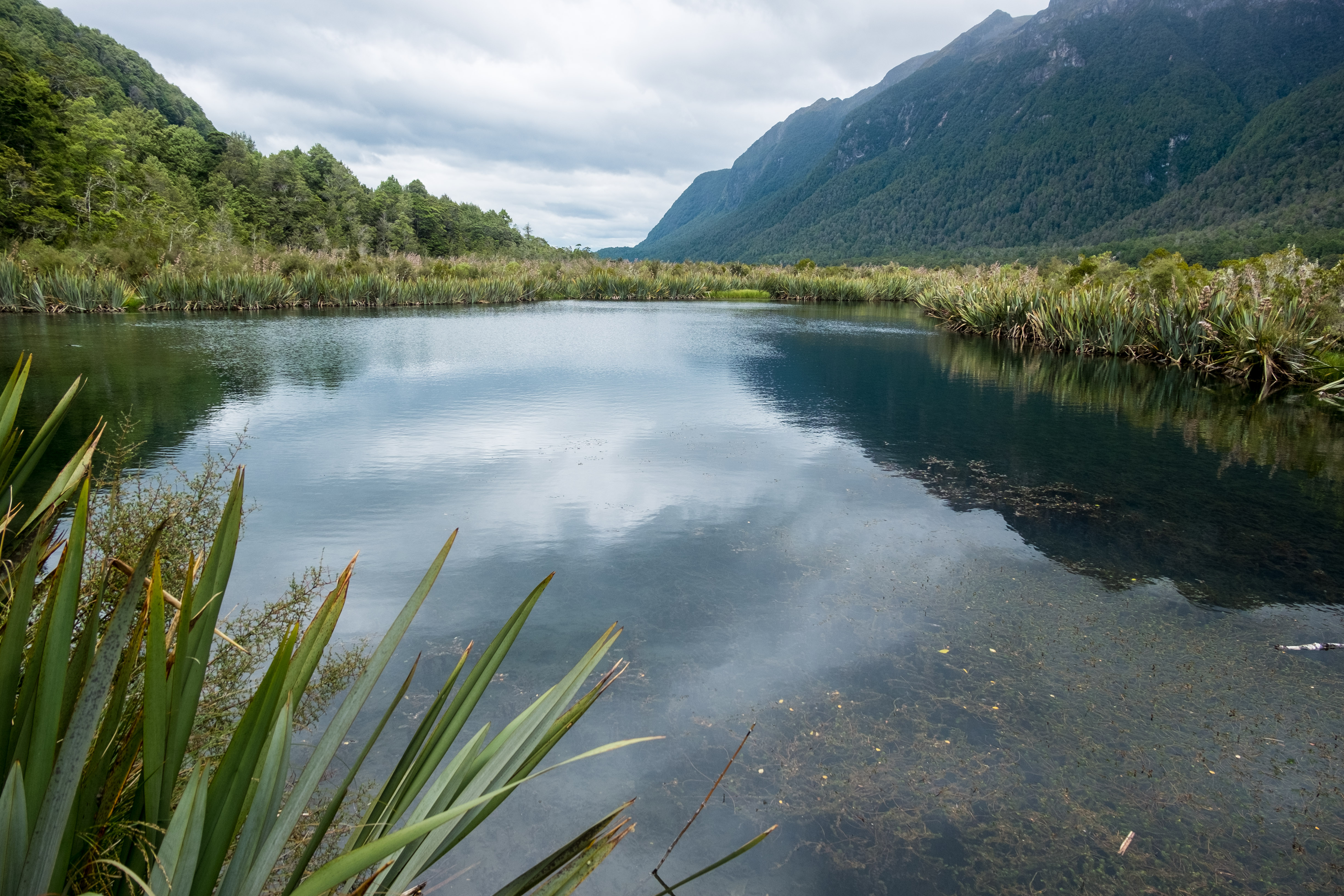 La route entre Te Anau et Milford Sound peut se faire en 1h45 mais je vous conseille de prévoir plus de temps à l’aller ou au retour pour vous arrêter aux points de vue et faire quelques-unes des belles balades qui se trouvent sur le trajet. Pour notre part nous nous sommes arrêtés pour deux courtes marches à « Mirror Lakes » et « The Chasm ».