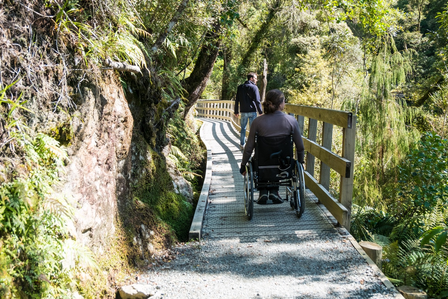 Sur le parking au départ de la balade vous trouverez des toilettes dont un accessible. La marche dans les gorges d’Hokitika a également été conçue pour être accessible aux fauteuils roulants jusqu’au premier point de vue. Même si la suite n’est pas spécifiquement renseignée comme étant faisable en fauteuil roulant il est tout à fait possible de la faire. Le sol est un peu inégal à certains endroits mais avec l’aide de quelqu’un, notamment aux entrées et sorties du pont, ça ne pose pas de problème. Se serait dommage de ne pas la faire car le passage sur le pont suspendu et la vue à la fin du chemin en valent la peine.