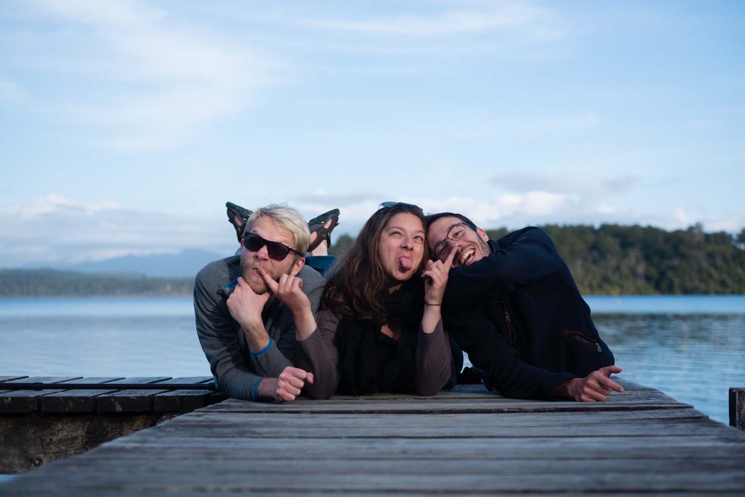 Après cette superbe après-midi au soleil nous allons au campsite Lake Mahinapua du Doc pour passer la nuit. Dimitri dort en tente ; Franck et moi dormons dans la voiture. Les animaux n’ont pas été très tendres avec nous ! Les wekas, oiseaux endémiques de Nouvelle-Zélande ont essayé à plusieurs reprises de rentrer dans la voiture pour voler de la nourriture et les sandflies nous ont encore attaqués ! Sales bestioles ! Ceci dit nous avons quand même passé un très bon moment, surtout lors de séance photos au bord du lac.