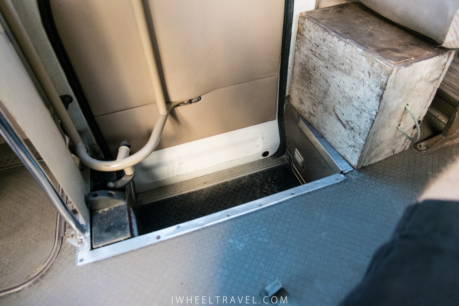 Le seul emplacement disponible pour mon fauteuil roulant dans la navette pour aller à l’island night.