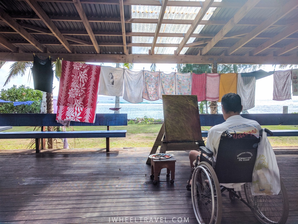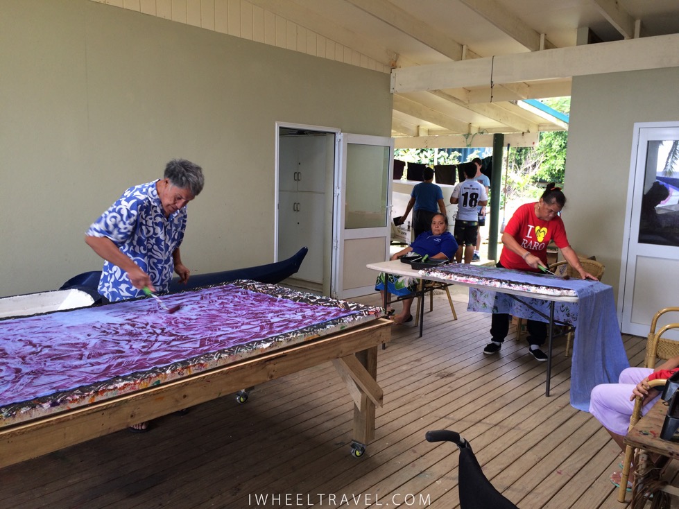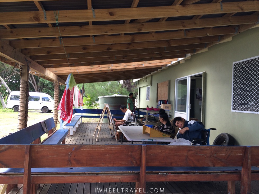 L’accessibilité n’est pas une priorité aux iles Cook. Cependant les locaux ont été bienveillants avec moi alors j’étais curieuse de voir comment cela se passe pour les personnes handicapées vivant sur cette ile. Nous sommes donc allés au Creative Centre passer une demie-journée. Ce lieu qui existe depuis 2001 accueille des personnes en situation de handicap du lundi au vendredi pendant la journée. Le but est de fournir un cadre à ces personnes dans lequel elles peuvent bénéficier d’une éducation, d’un environnement social et de soins. Le centre est financé par le ministère de l’éducation des iles Cook et par l’Etat néo-zélandais. Des aides matérielles et financières sont également apportées par d’autres pays tels que la Chine, le Japon et l’Inde.