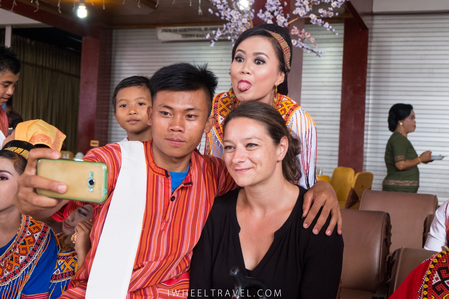 Nous voulons nous rapprocher discrètement du podium pour admirer leurs tenues mais notre présence ne passe pas inaperçue et déclenche une déferlante de selfies. Les invités sont contents de nous voir et veulent prendre des photos avec nous. La situation est assez cocasse : pendant plus de quinze minutes nous nous retrouvons entourés de jeunes et de moins jeunes. Certains d’entre-eux, surpris par la couleur de cheveux de Franck, les touchent comme pour vérifier que se sont bien des vrais !