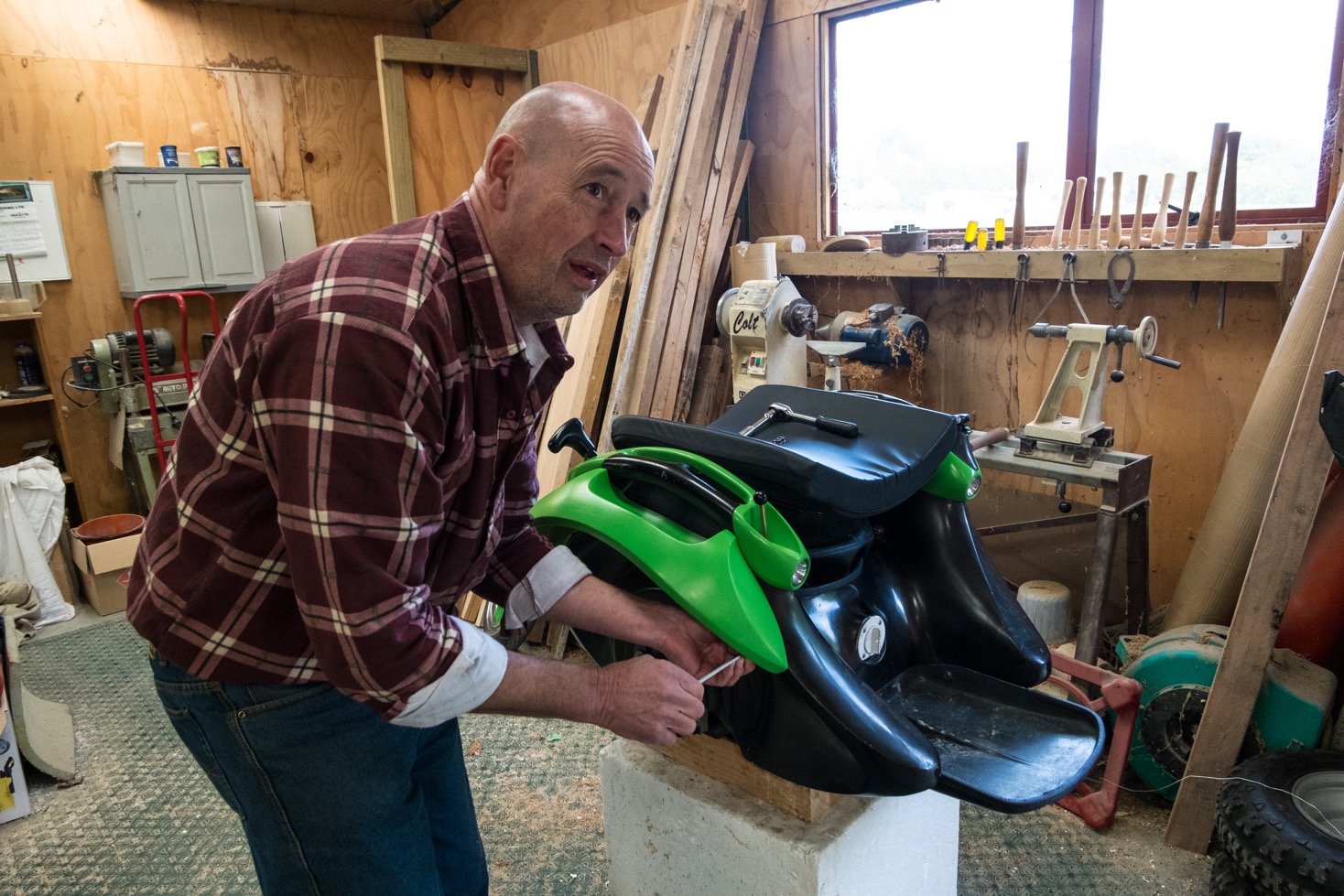 Fraichement arrivés en Nouvelle-Zélande, nous avions acheté notre voiture à une pvtiste française dès notre première semaine dans le pays. Super sympa, elle en a profité pour nous donner quelques conseils. C’est comme cela qu’un mois et demi plus tard nous étions chez Celia et Hugh en HelpX, à Taupo, pour deux semaines. Un soir au fil d’une conversation, Hugh nous parle d’un nouveau fauteuil roulant conçu par un kiwi et nous montre une vidéo. Ce fauteuil à l’air super et il ne ressemble à aucun autre ! Je suis intriguée…
