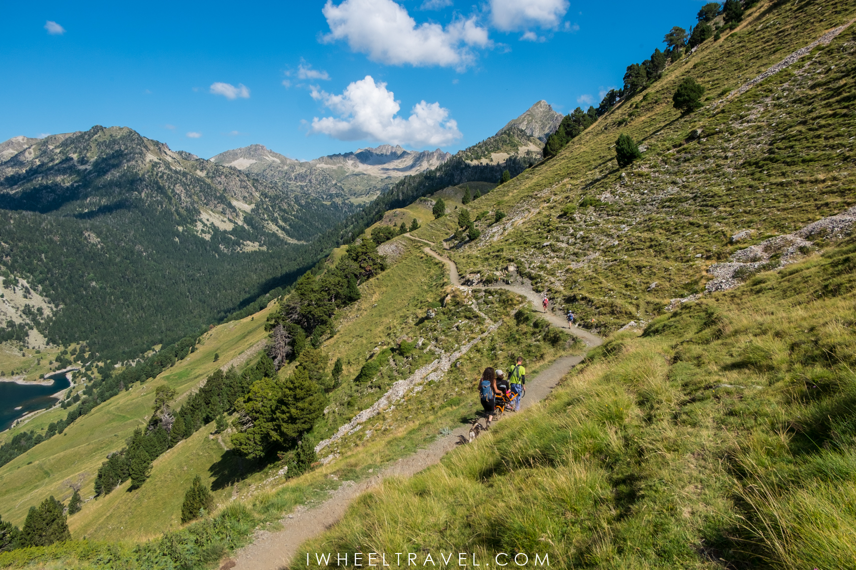 - En joëlette sur le GR10 surplombant le lac de l’Oule.