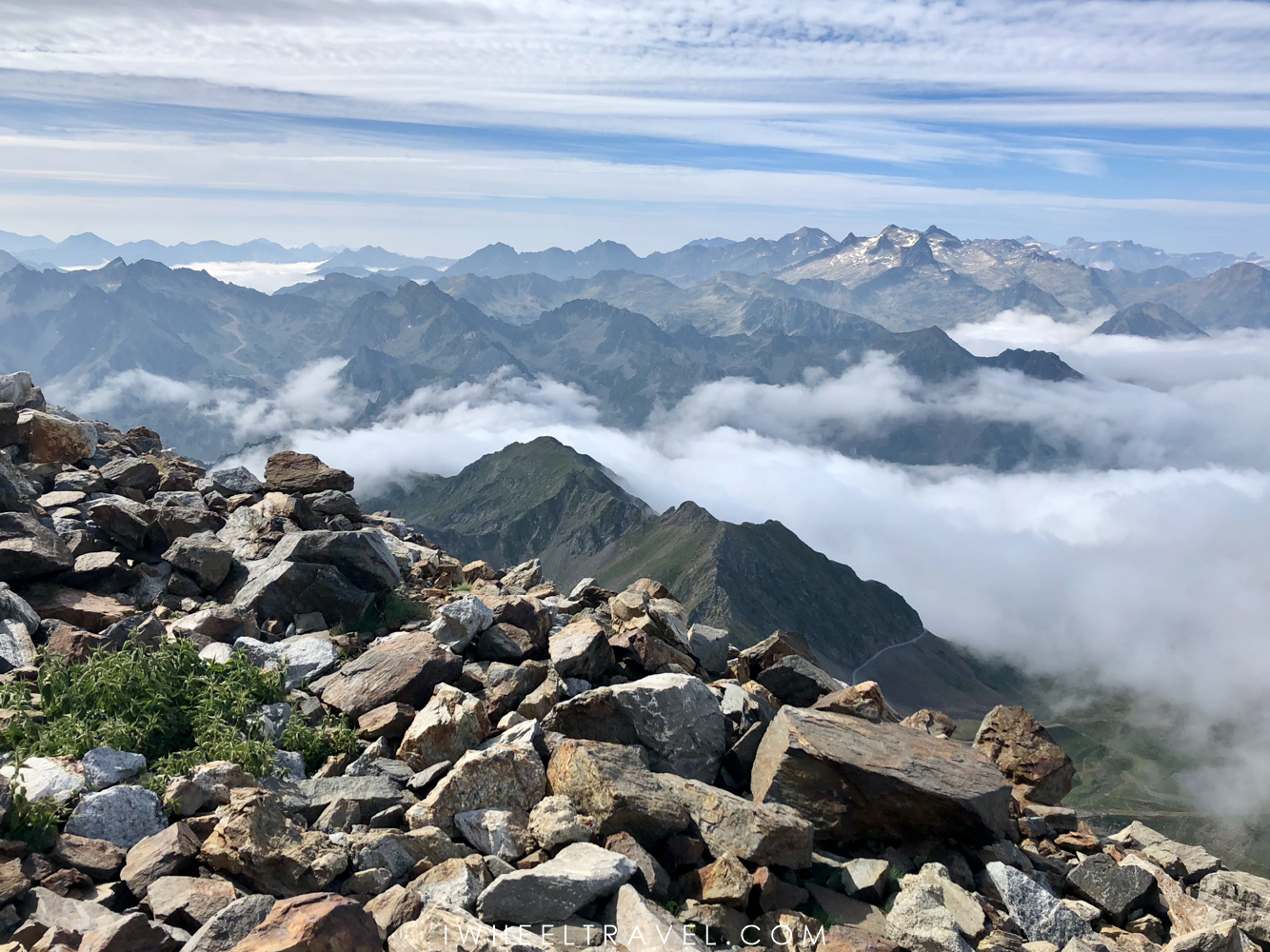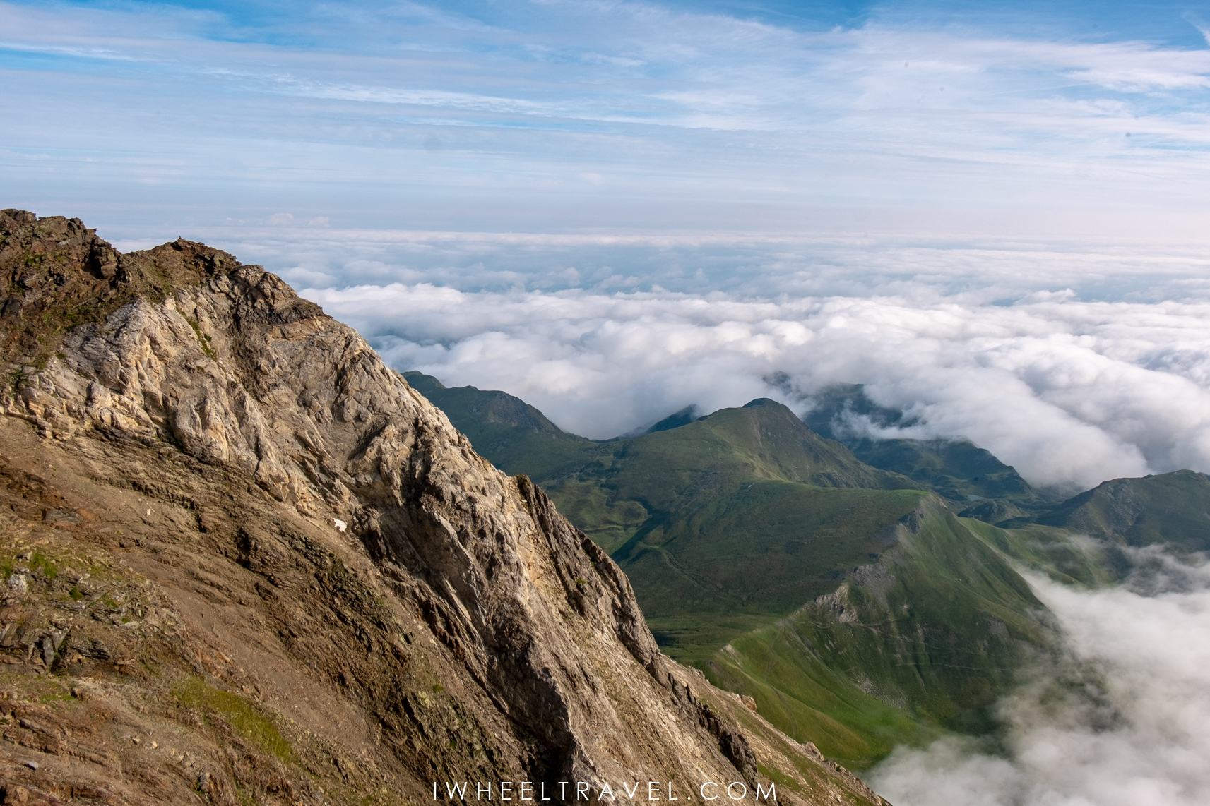 Autre montagne, autres sensations. Après avoir l’avoir découvert recouvert de son manteau de neige en mars, me voilà de retour au Pic du Midi de Bigorre, 5 mois plus tard, pour vivre une journée exceptionnelle. Mais cette fois le Pic a revêtu son habit de roches et de verdure. Une vue toujours aussi sensationnelle mais très différente : la mer de nuage qui flotte autour des sommets donne une dimension mystique à ce panorama.