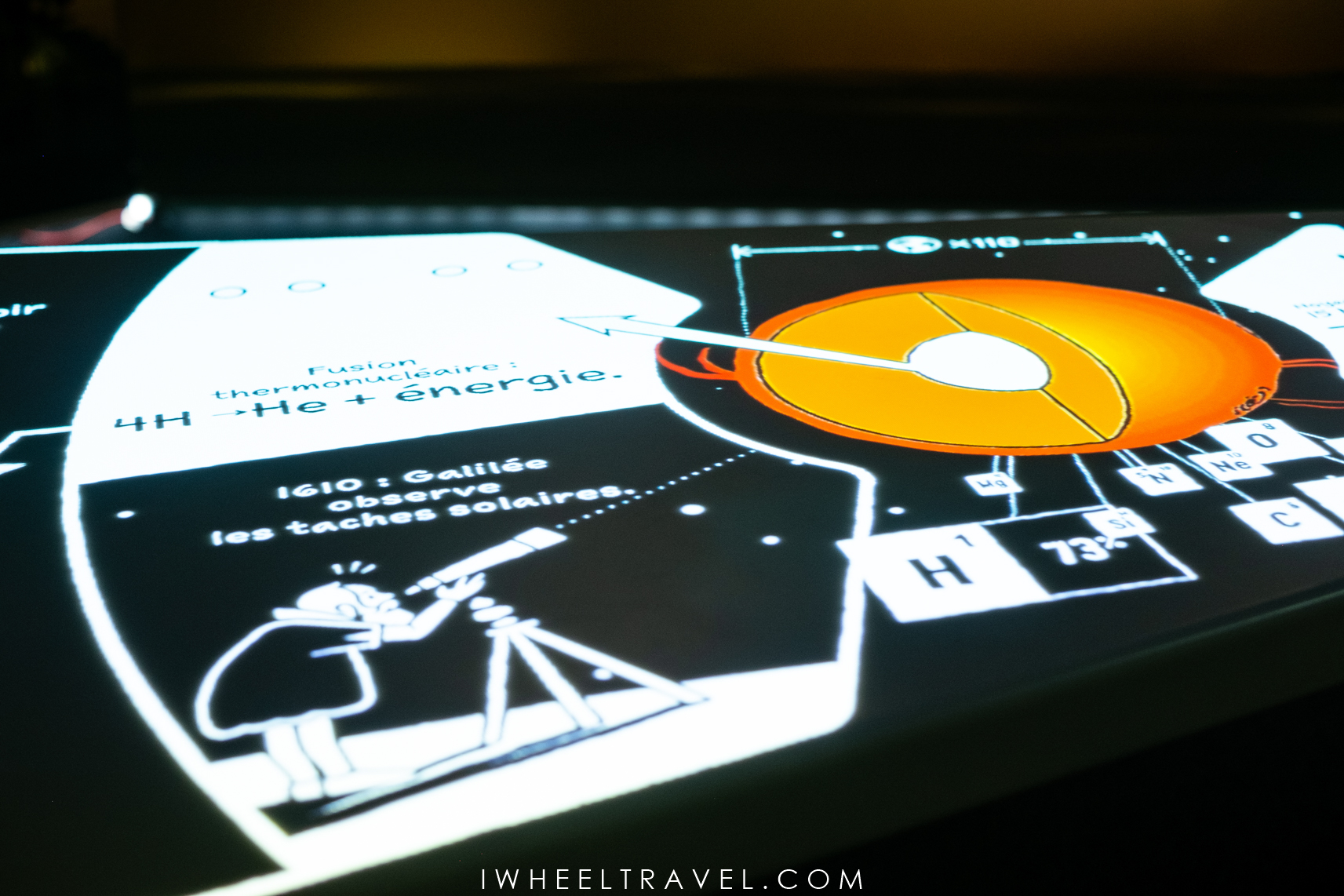 De retour à l’intérieur de l’observatoire, nous avons visité l’espace expérience qui permet d’en apprendre plus sur l’histoire du Pic du Midi, de son observatoire et des projets scientifiques qui y ont été menés. C’est également l’occasion d’essayer de comprendre certains phénomènes spatiaux (turbulences, activités des étoiles, lumière des étoiles…) qui sont expliqués à travers des textes simples ou des explications plus complètes, à chaque fois de manière interactive et ludique.