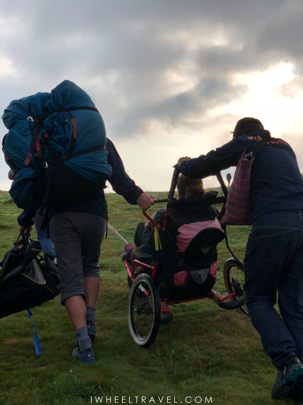 Pendant cette randonnée j’ai aussi pris conscience des possibilités qu’offre une joëlette : avec ce matériel je peux partir en randonnée avec mes amis en haute-montagne, Franck n’a pas mauvaise conscience à « me laisser derrière », je n’ai pas de frustration à ne pas pouvoir le suivre, mes amis n’ont pas à « se porter volontaire » pour se balader avec moi dans la vallée pendant que d’autres partent explorer les hauteurs… Alors même si je n’aime pas être passive et préfère contribuer à l’effort, même si à quelques reprises j’ai été frustée de ne pas pouvoir aider Franck, Aurélien et Hélène qui fournissaient d’importants efforts pour me transporter, randonner en joëlette reste pour moi une très belle expérience.