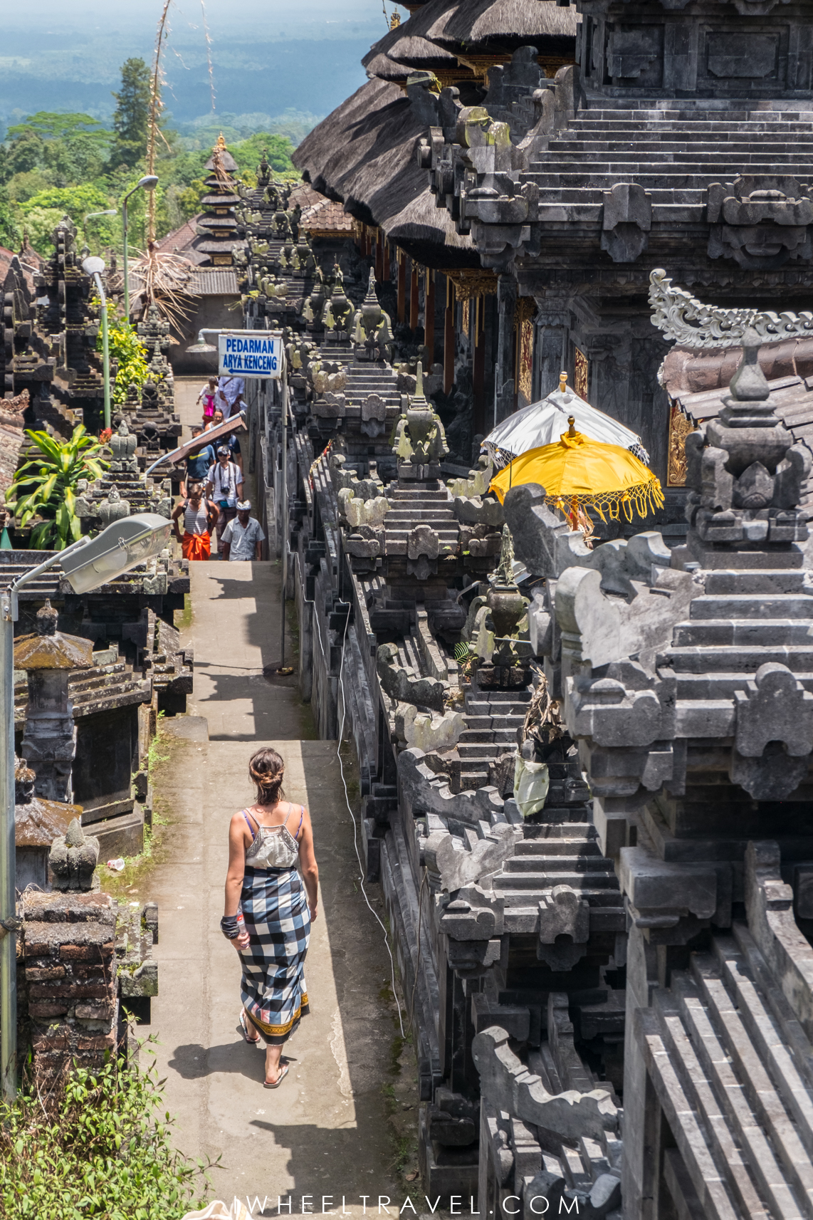 En réalité ce n’est pas un temple mais un complexe de 23 temples réunis. C’est donc le plus grand temple de Bali et aussi le plus important pour les Balinais qui le surnomment le temple-mère. Seul le temple principal « Pura Penataran Agung » est public et peut se visiter. Tous les autres sont des temples privés dont l’accès est réservé à la famille.