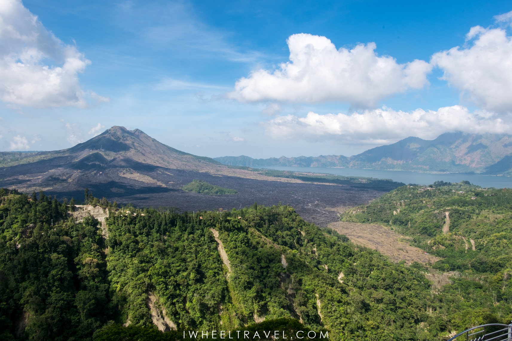 Parmi les plus beaux volcans de l’Indonésie on trouve le mont Batur culminant à 2152 mètres et capable d’éruptions très impressionnantes causant malheureusement d’important dégâts et entraînant parfois le décès de plusieurs personnes. Aujourd’hui, plus de 20 ans après la dernière éruption ayant duré plusieurs mois en 1999-2000, l’on distingue encore clairement les traces des coulées de lave le long des flancs du volcan depuis le village de Kintamani.