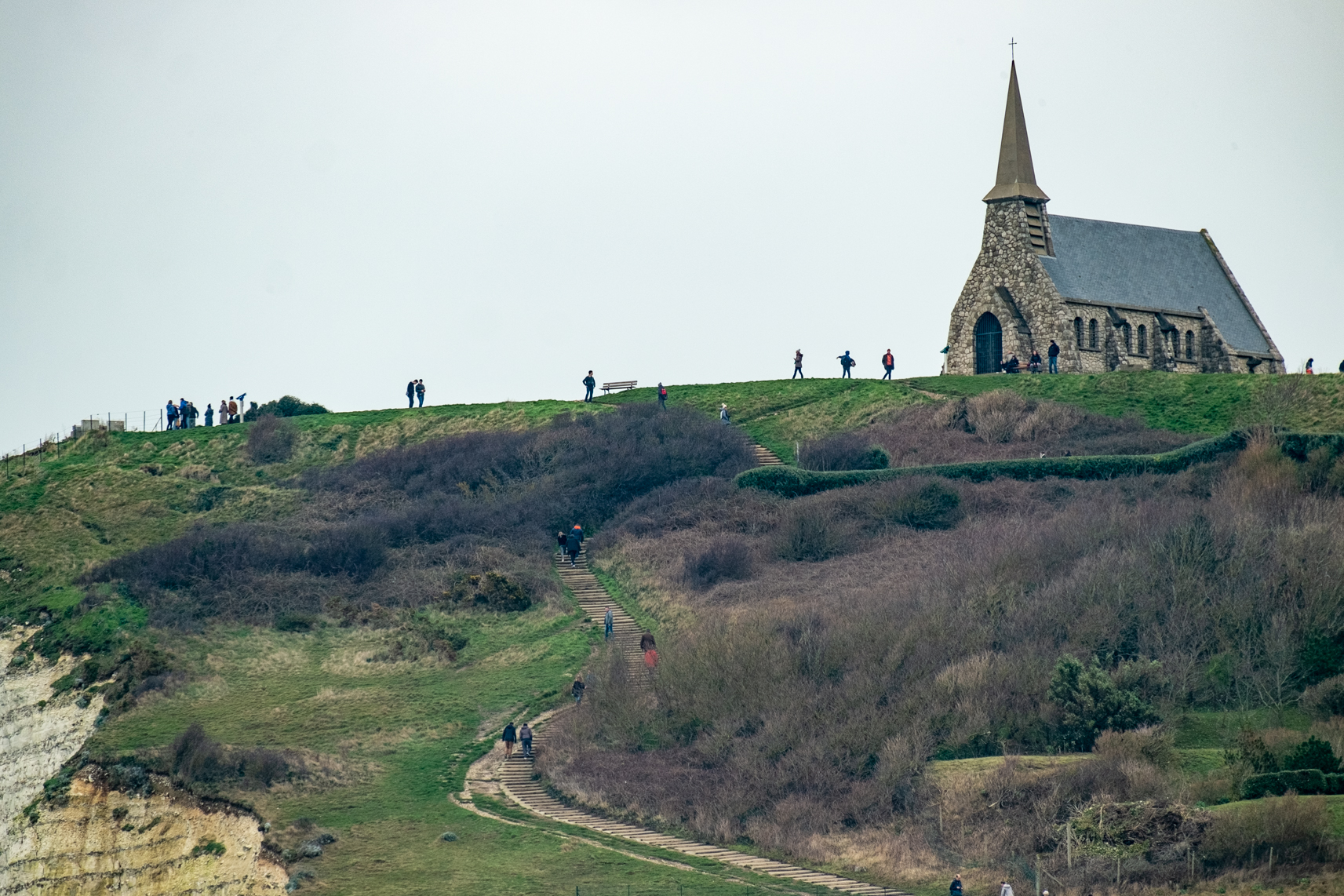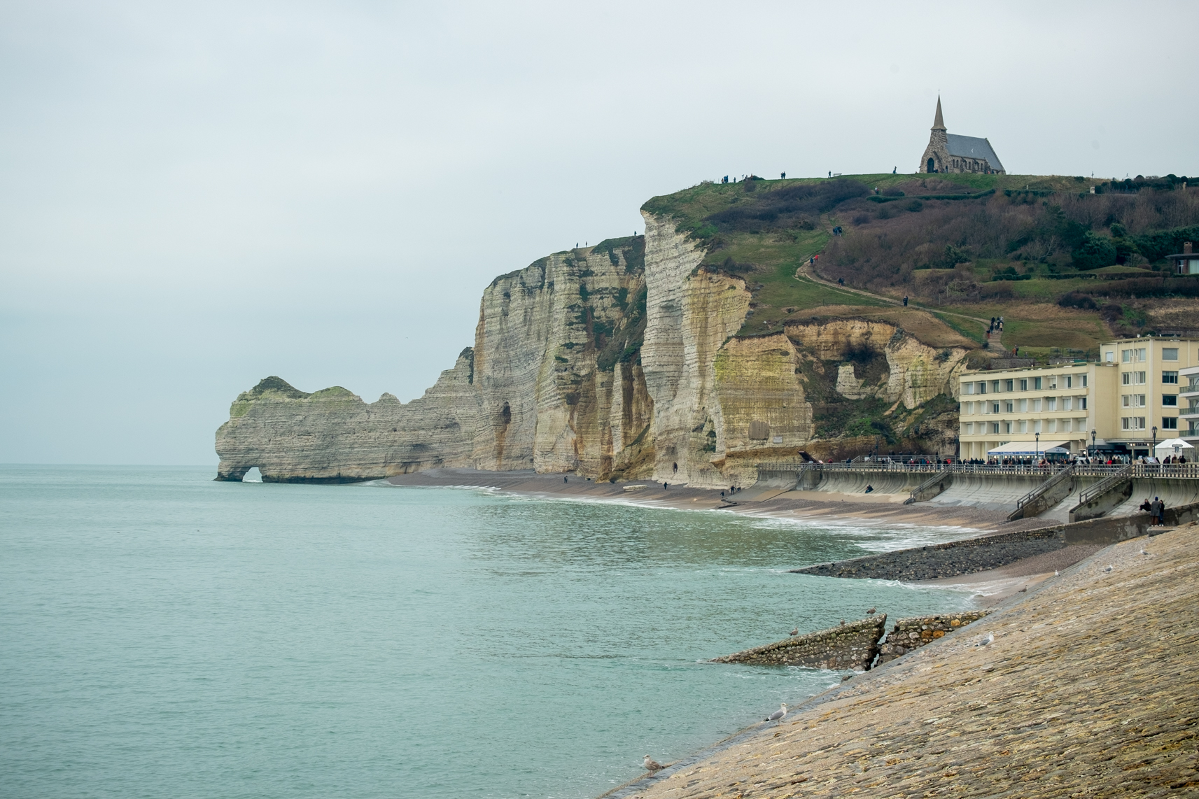 Nous avons donc essayé d’accéder à la chapelle en voiture, ou du moins à la plateforme d’observation, mais les routes étaient barrées. Je me suis donc contentée d’admirer les falaises d’Etretat depuis le bord de mer mais cela vaut déjà le détour !