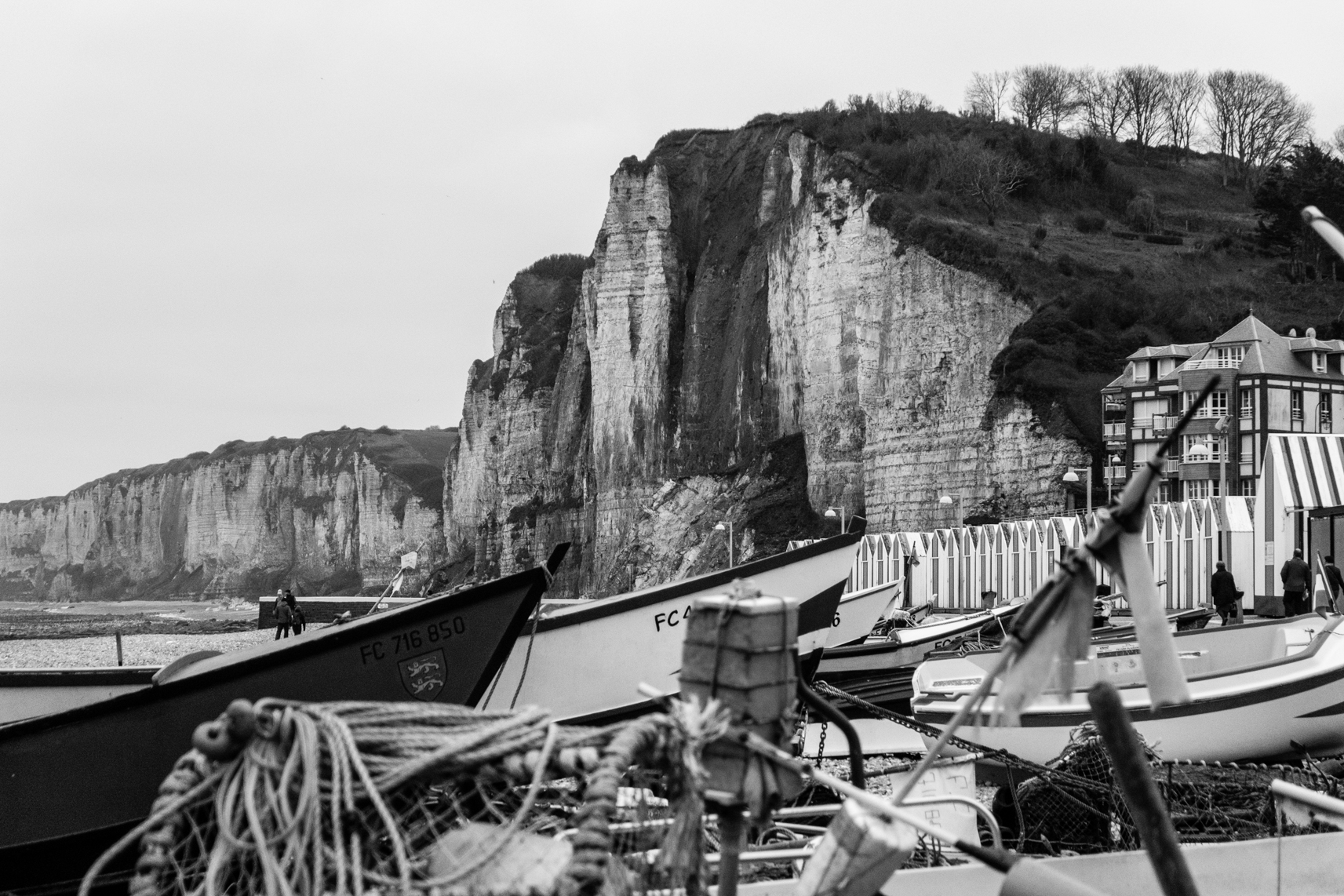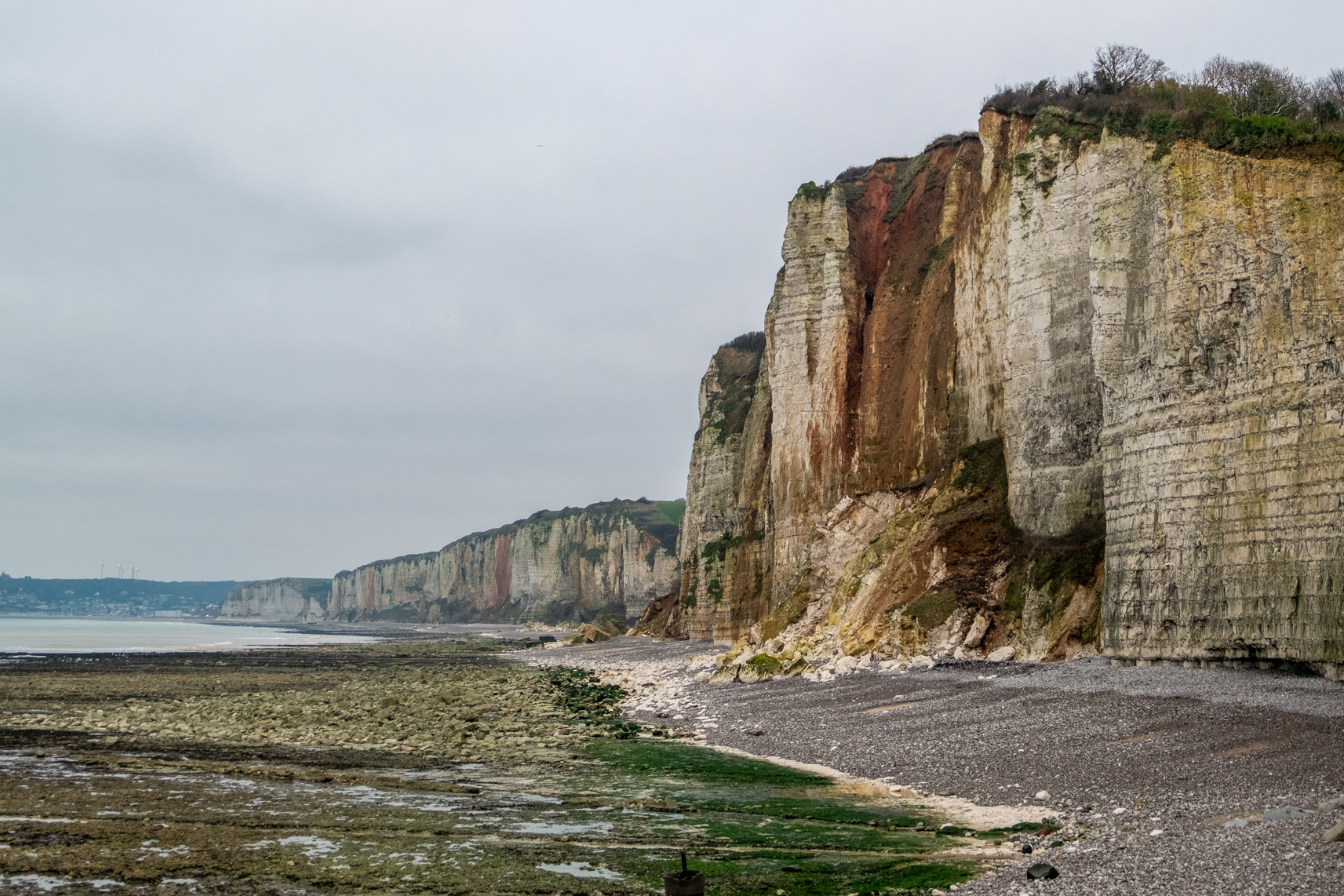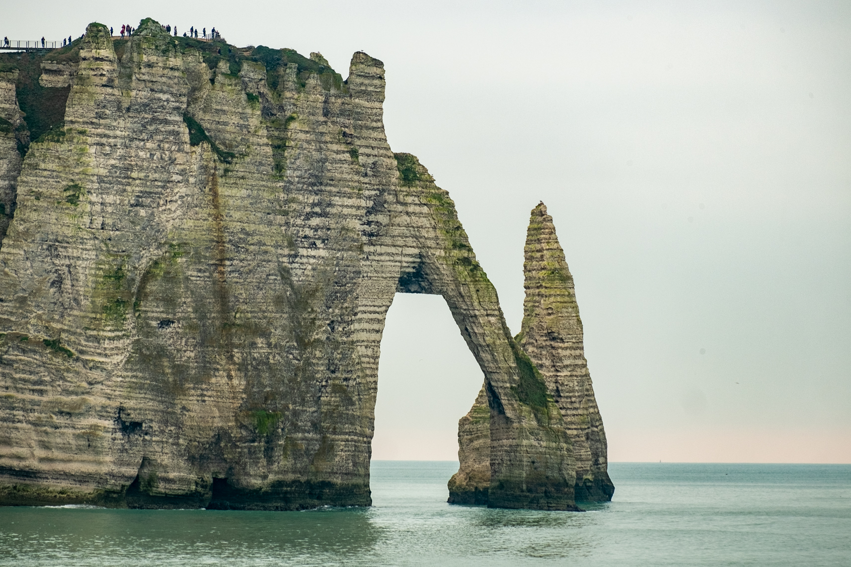 Qui n’a jamais entendu parler d’Etretat et ses célèbres falaises de craie blanche faisant fièrement face aux embruns et aux tempêtes de la Manche depuis des siècles ? L’aspect spectaculaire de cette falaise et de son arche en font sans doute l’un des littoraux les plus photographiés de France malgré que sa notoriété et sa splendeur ne soient plus contestés depuis que Claude Monet les a rendus célèbres. Alors bien sûr j’ai découvert ce paysage avec un regard impressionné alors que Franck a apprécié un moment de retour en enfance face à cette plage de galets lui rappelait tant celles de sa jeunesse.
