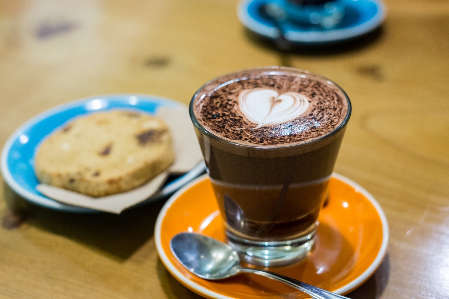 Nous avons terminé la walkway, la nuit commence à tomber et l’air s’est déjà bien refroidi. Nous décidons de rejoindre la gare de Katoomba en prenant le cableway puis le bus. Nous galopons pour attraper le train pour Sydney. Raté ! Nous arrivons sur le quai une minute trop tard ! Le prochain train est dans une heure… Allez hop direction le « Up beet Juice & espresso », le petit bar vraiment sympa que l’on avait aperçu sur le retour. Rien de mieux qu’un bon chocolat chaud avec un cookie fait maison pour se réchauffer !