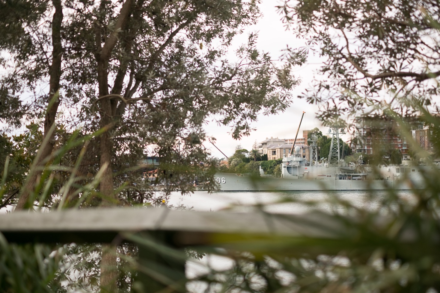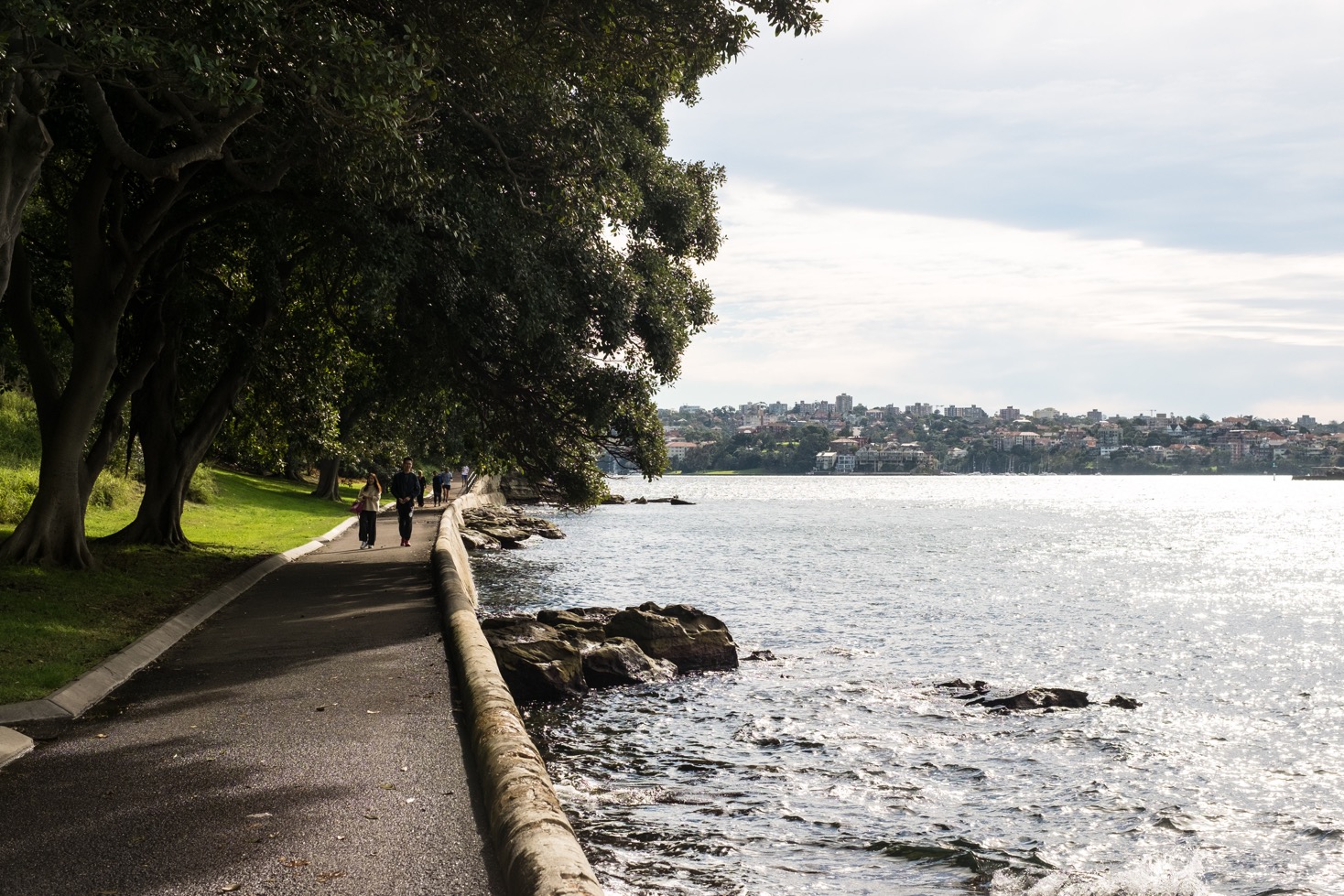 Après un petit arrêt au pied de la fontaine nous quittons Hyde Park pour entrer dans Domain. Dans ce parc il y a une agréable balade à faire en prenant le temps de longer la « Mrs Macquarie Road ». J’ai vraiment aimé flâner au soleil sur ce petit chemin le long de la Woolloomooloo Bay. On y voit des navires militaires stationnés de l’autre côte de la baie. Pour moi, marcher et regarder des bateaux, c’est un peu une madeleine de Proust : cela me rappelle les sorties dominicales en famille pendant mon enfance.