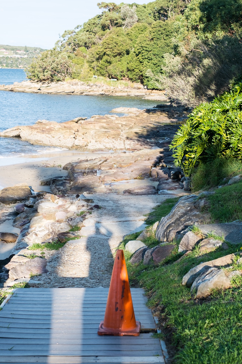 Aujourd’hui pas de farniente ni de bière en terrasse. Nous allons faire la « Manly scenic walk » : 9 kilomètres et 4 heures de marche nous attendent. Autant vous le dire tout de suite : en débutant cette walk nous n’étions pas au bout de nos surprises ! Le début de cette marche se passe très bien. Nous errons tranquillement le long de la plage « manly cove » puis nous avançons sur le sentier côtier. Il y a un chemin bétonné qui suit la côte ce qui rend la balade très facile en fauteuil. A ce moment là, je suis détendue ; a priori ça devrait bien se passer.