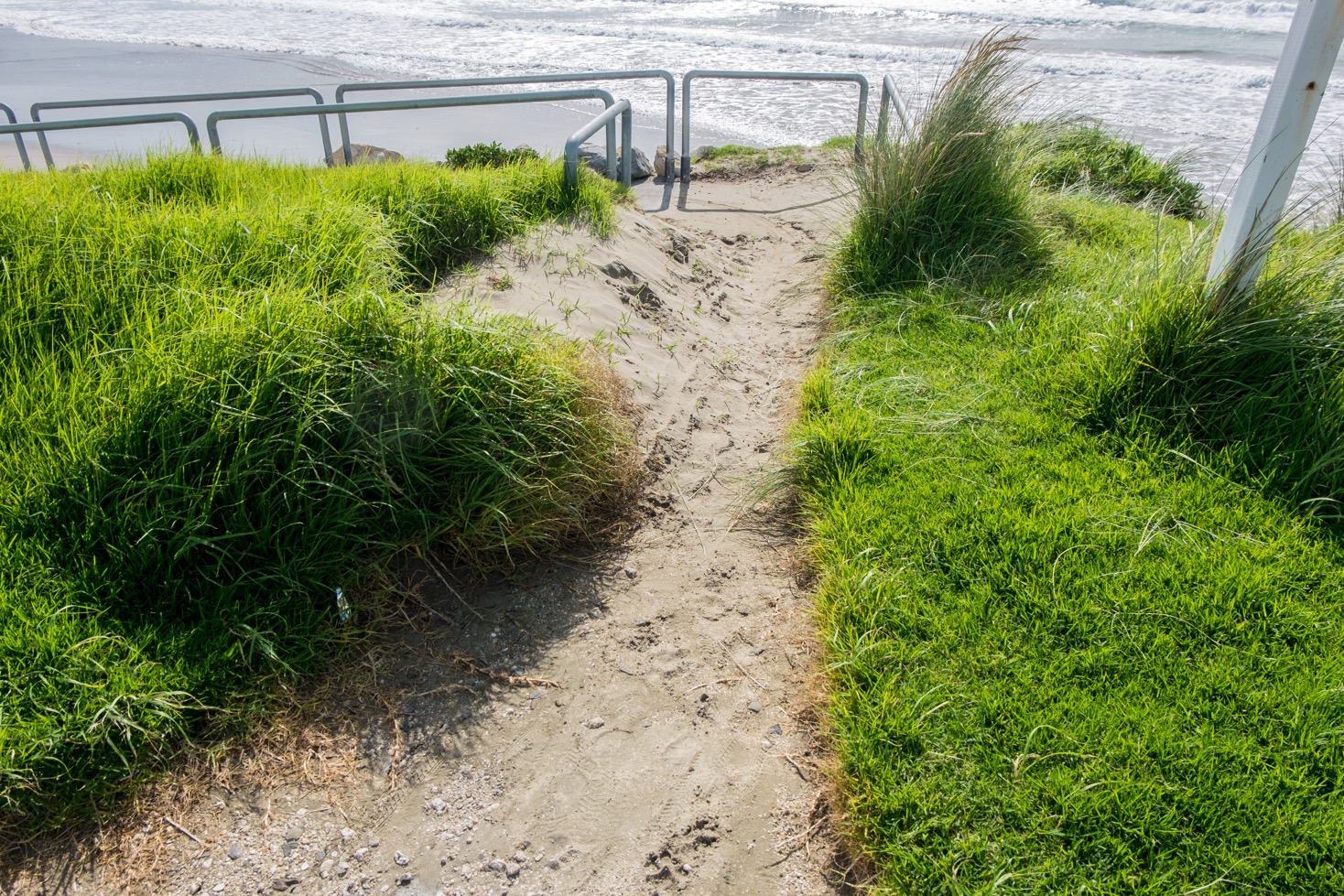 En arrivant j’ai bien cru que la plage était accessible en fauteuil roulant car j’ai aperçu une rampe d’accès. Malheureusement c’est la rampe elle-même qui n’est plus accessible car la nature a repris ses droits : le sable et l’herbe ont envahi le chemin. Il y a par contre des toilettes adaptés.