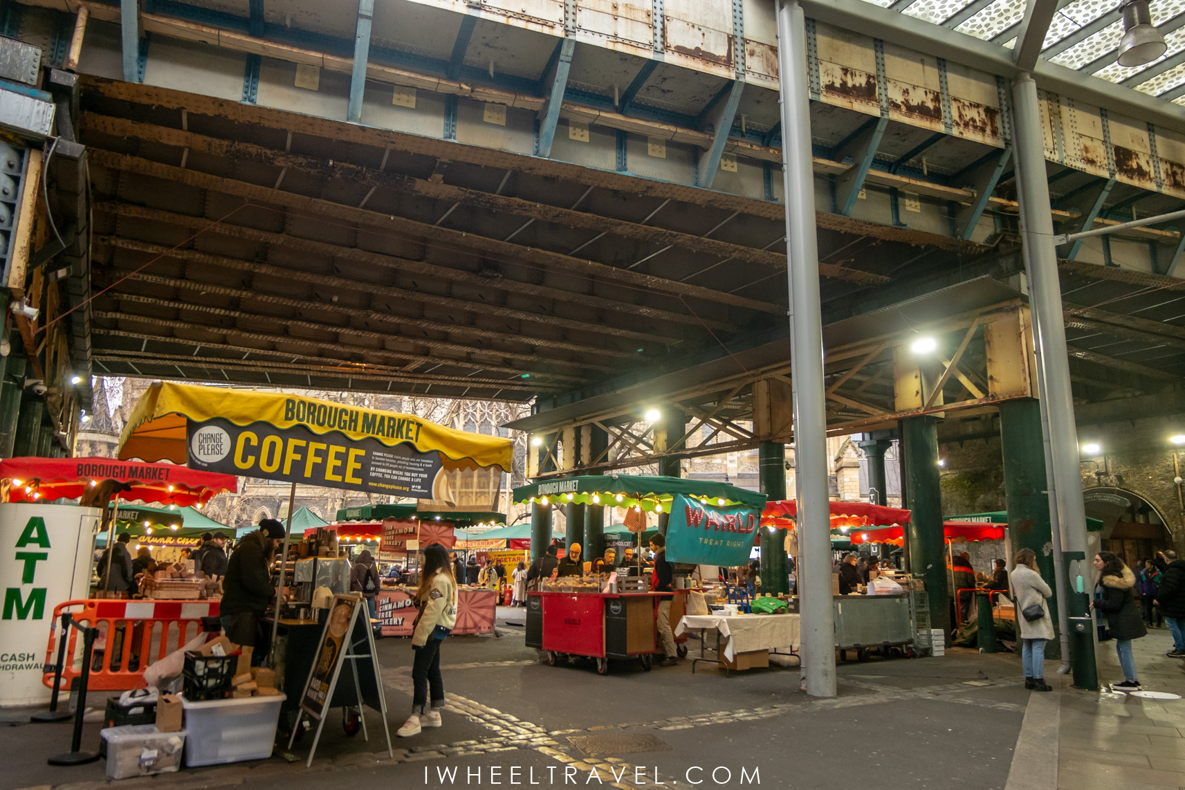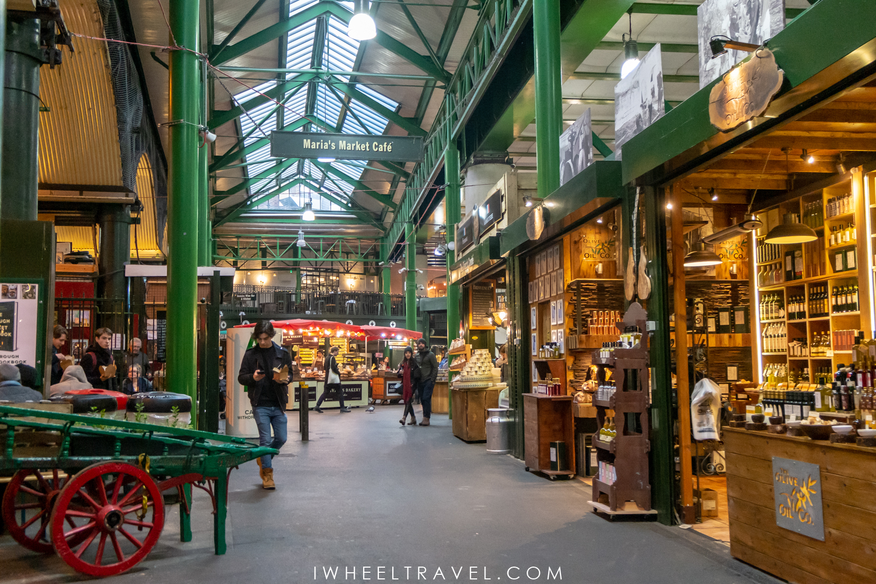 Avec une partie des étals en dessous les rails de chemin de fer, une structure de métal vert, de briques rouges et un toit en verre, ce lieu à l’air intemporel. C’est un endroit empli de couleur et de vie ! Pour les gourmands, il est possible de déguster gratuitement une petite portion d’une spécialité à presque chaque stand. Il est probablement possible de manger un repas complet gratuitement en faisant le tour des étalages !