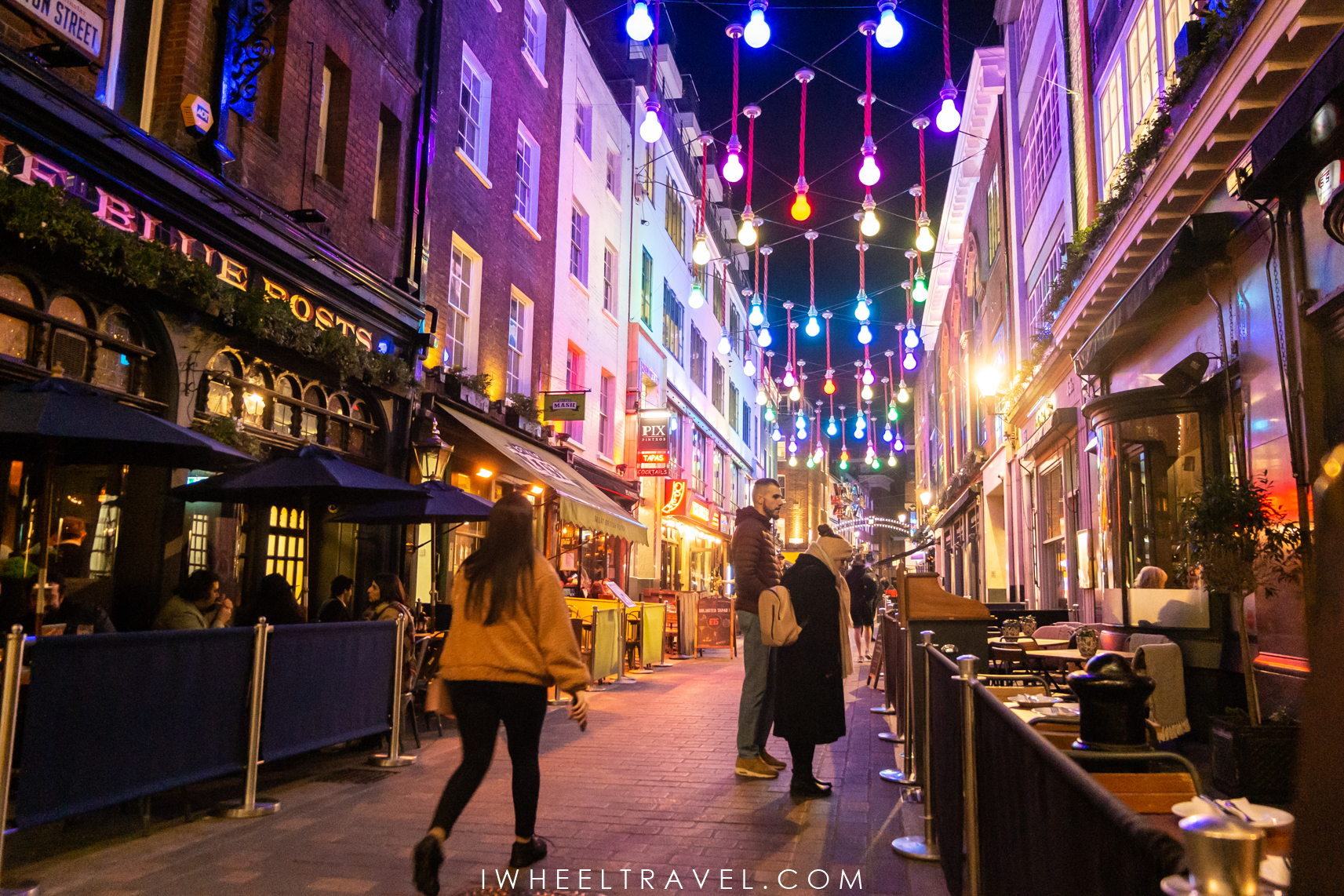 Après plus d’une heure et demie à l’intérieur de ce bunker, nous avons décidé d’aller prendre un bol d’air frais et de nous promener dans les rues de Soho et de Covent Garden. Auparavant, Soho était un quartier connu pour ses nuits animées et même torrides. Aujourd’hui le quartier est devenu beaucoup plus calme mais reste toujours vivant et coloré à la tombée de la nuit.