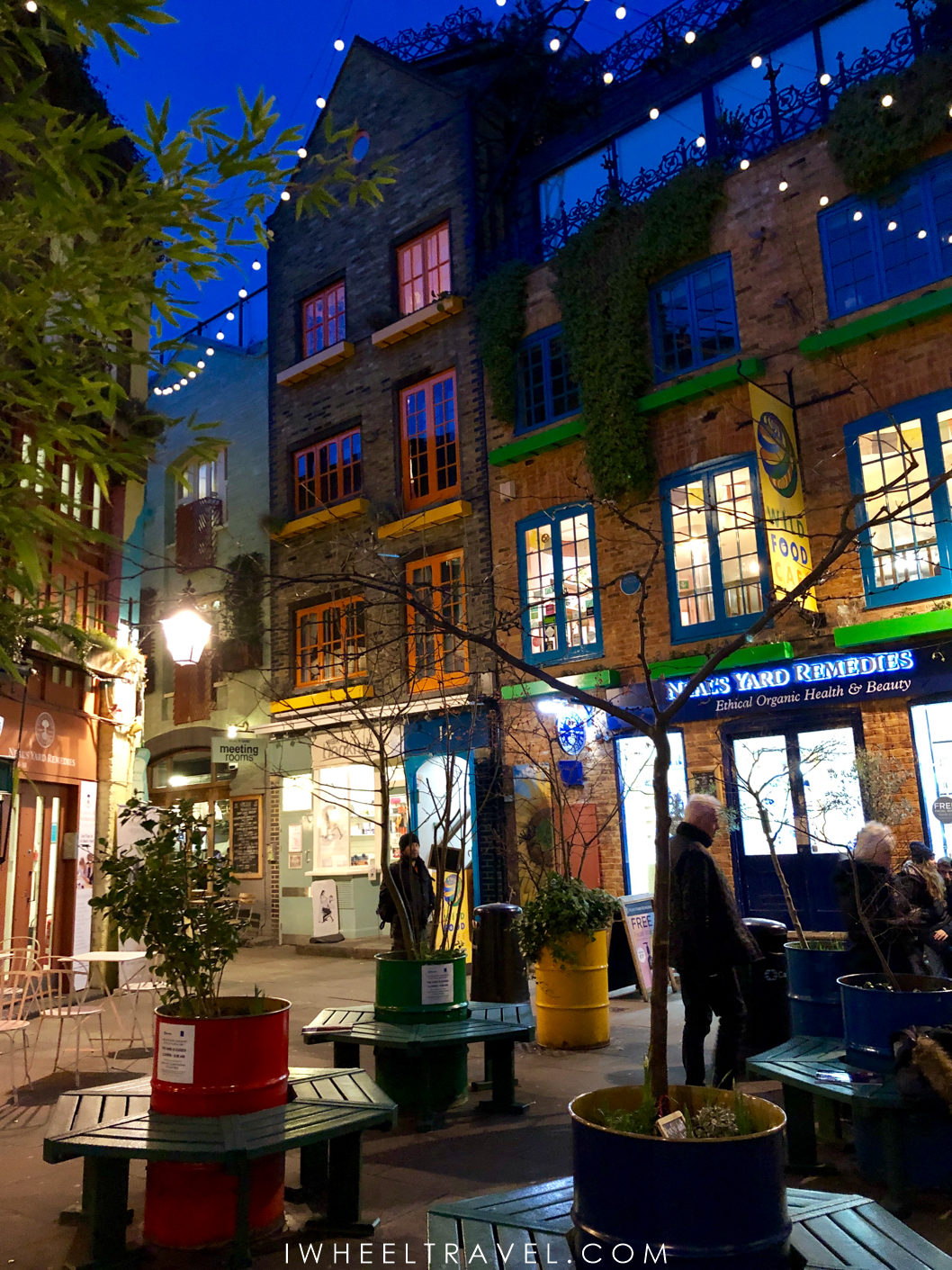 - A Neal’s Yard, plusieurs magasins entourant la cour ne sont pas accessibles en fauteuil roulant.