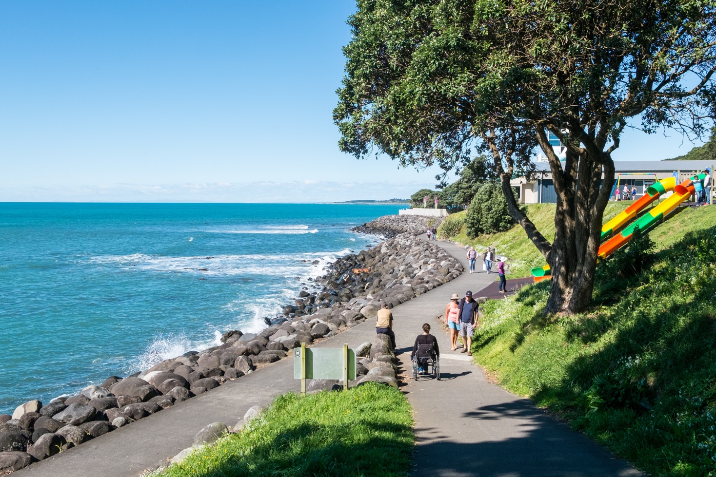 La ville de New Plymouth, en elle-même, n’a pas vraiment de charme. C’est juste une ville de taille moyenne avec de grandes rues qui peinent à se remplir. Nous avons voulu regarder le match des All Blacks samedi soir dans un pub : les rues étaient quasiment désertes. Du coup, à défaut d’ambiance, nous sommes rentrés tous penauds à notre couchsurfing. Côté accessibilité, le centre-ville est relativement plat et les trottoirs sont bien aménagés. La plupart des commerces semblent accessibles. Néanmoins si New Plymouth n’est pas une ville animée, elle reste une ville agréable à visiter durant les beaux jours. Je vous conseille d’aller faire un tour au Pukekura Park et d’aller vous balader sur la Coastal Walkway.