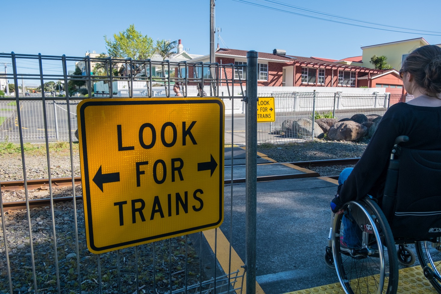 La Coastal walkway est globalement une balade accessible en fauteuil roulant. En dehors des voies ferrées à traverser je n’ai noté qu’un seul obstacle. Juste après Breakwater Bay, après le centre aquatique, il y a une montée assez raide pendant laquelle il faut monter et descendre des trottoirs dont les bateaux d’accès sont difficiles à passer. Personnellement j’ai préféré demander de l’aide à Franck pour être sûre de ne pas me louper !