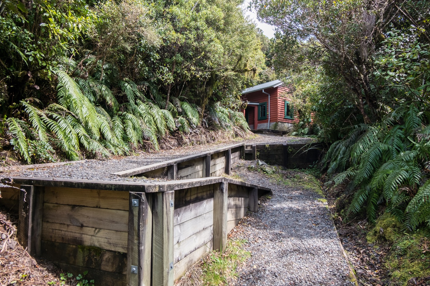 Du coup nous avons décidé de faire la Dawson Falls Power Station Walk. Cette courte marche de cinq minutes amène à un petit centre de production de courant et est censée être accessible en fauteuil roulant. Là encore c’est difficilement le cas. Le chemin est court mais en pente et le sol est recouvert de graviers. Il n’y a pas de trop de regrets à avoir car il n’y a pas grand chose à voir : c’est juste une petite maison avec quelques machines dedans et une petite rivière à la sortie.