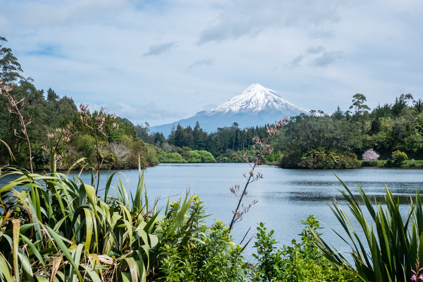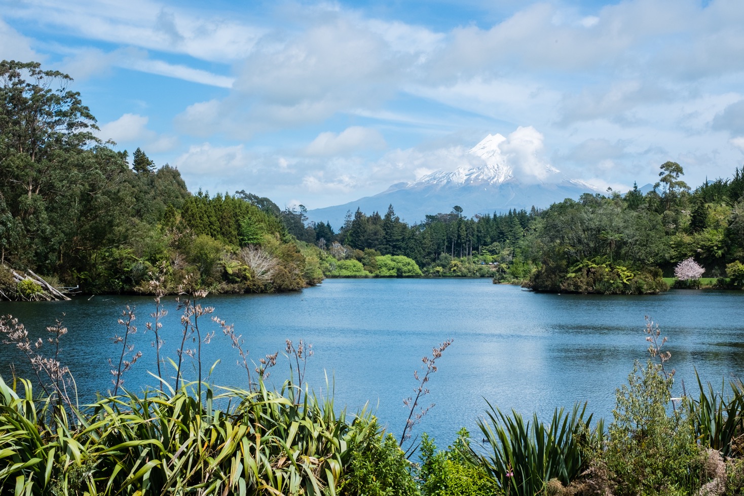 Alors si vous décidez d’aller sur le mont Taranaki surtout prenez le temps de vous arrêter au lac Mangamahoe qui se situe à mi-route entre New Plymouth et le mont. Nous nous y sommes arrêtés pour pique-niquer et on a vraiment pas regretté. La vue est incroyable ! Le mont se dresse fièrement au dessus du lac et des forêts de pins. Et en bonus, vous pourrez manger entourés de canards et observer les cygnes noirs sur le lac.
